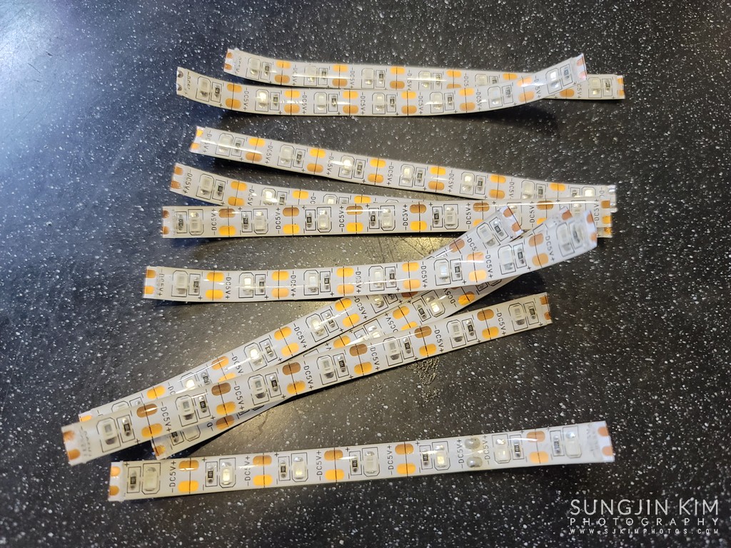 샘플로 재단한 길이에 맞춰 UV LED 스트립을 모두 잘라준다.