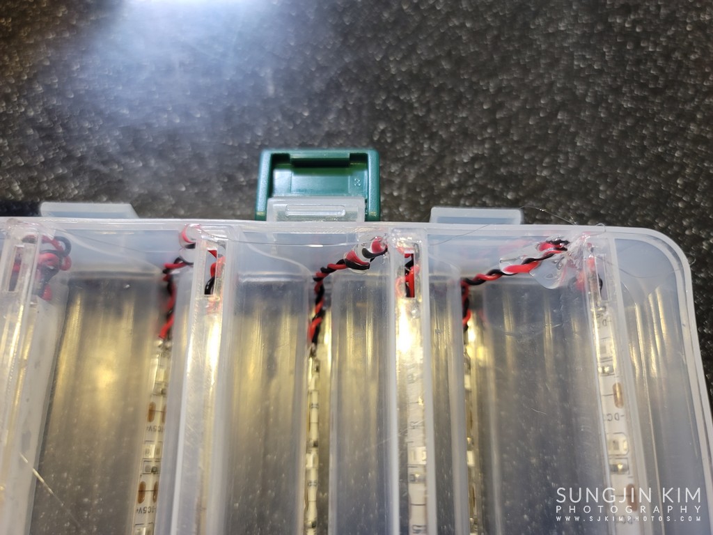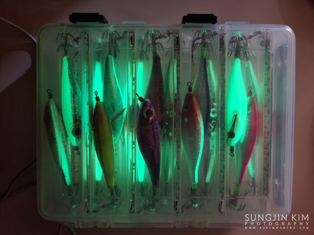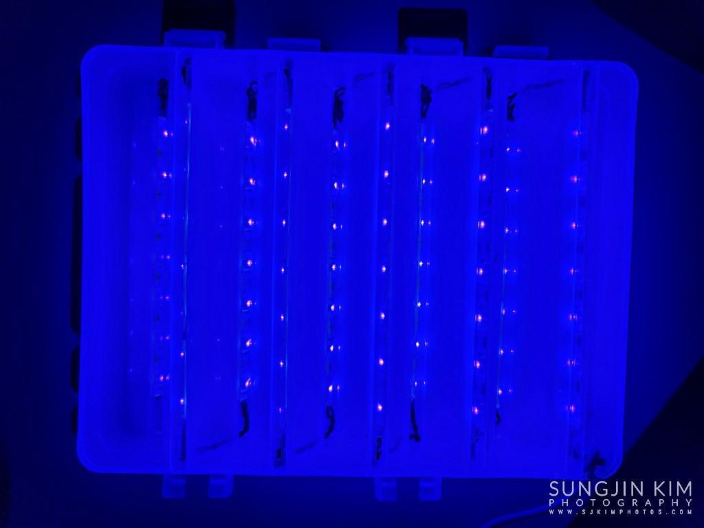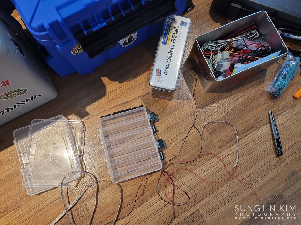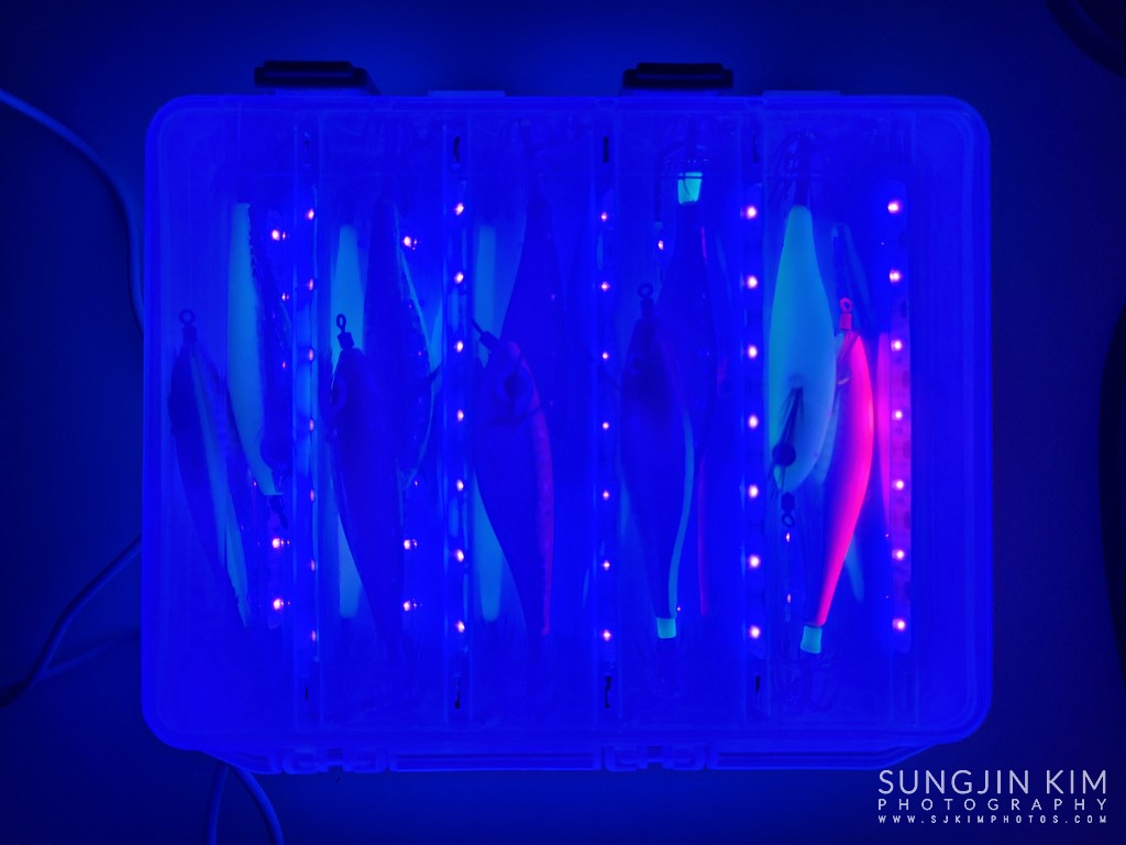 집에 돌아와서 좀 더 편리하게 에기들을 축광할 방법을 찾다가 에기를 보관하는 플라스틱 테클박스에 직접 UV LED를 장착하여 축광 케이스를 만들어 보았다. 10월에 예약해둔 두번째 쭈꾸미 낚시 떄 사용해 보려고 한다.