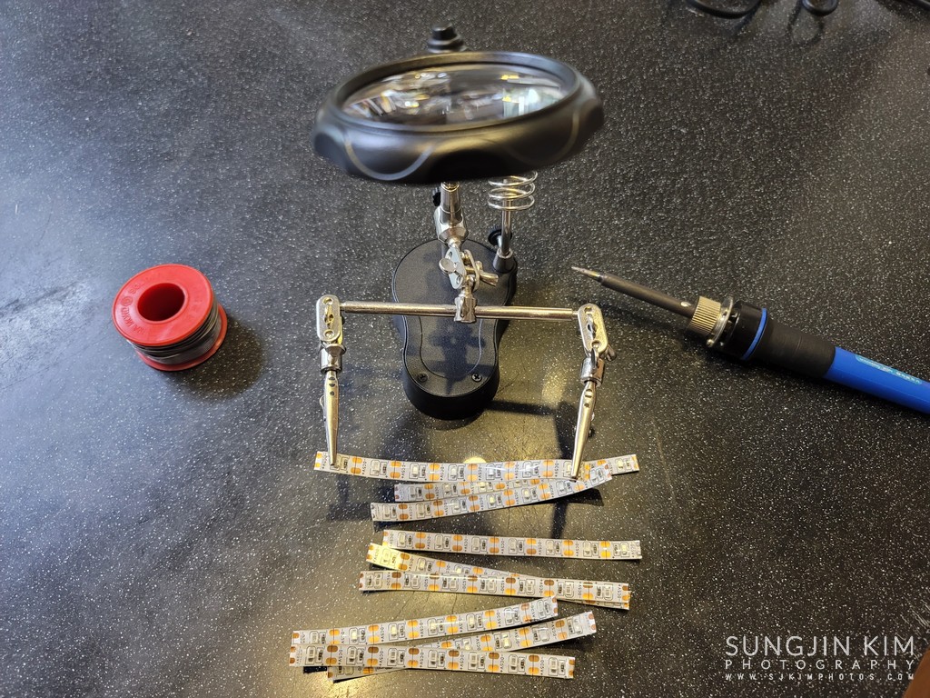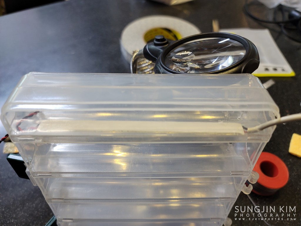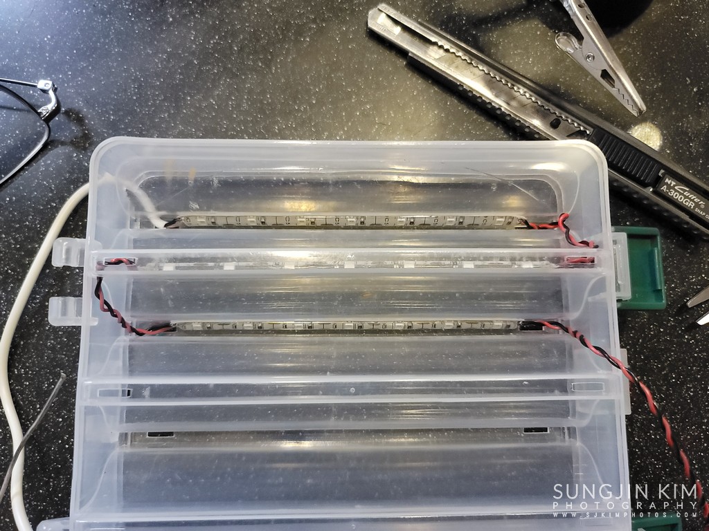 작업이 순조롭게 잘 진행되고 있다. UV LED 스트립을 세 개 장착하였다.