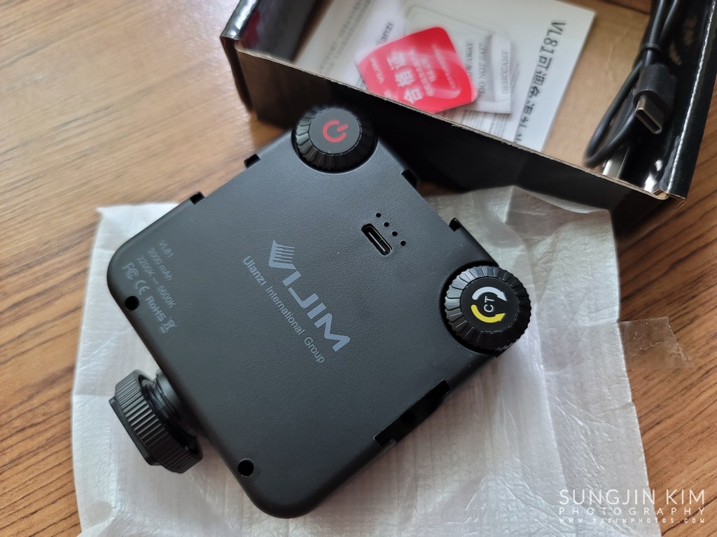 제조사 사양에 따르면 최대 광량에서 약 2시간반 정도 사용이 가능하기 때문에 왠만한 환경의 촬영에서는 큰 무리 없이 사용할 수 있을 것 같다.