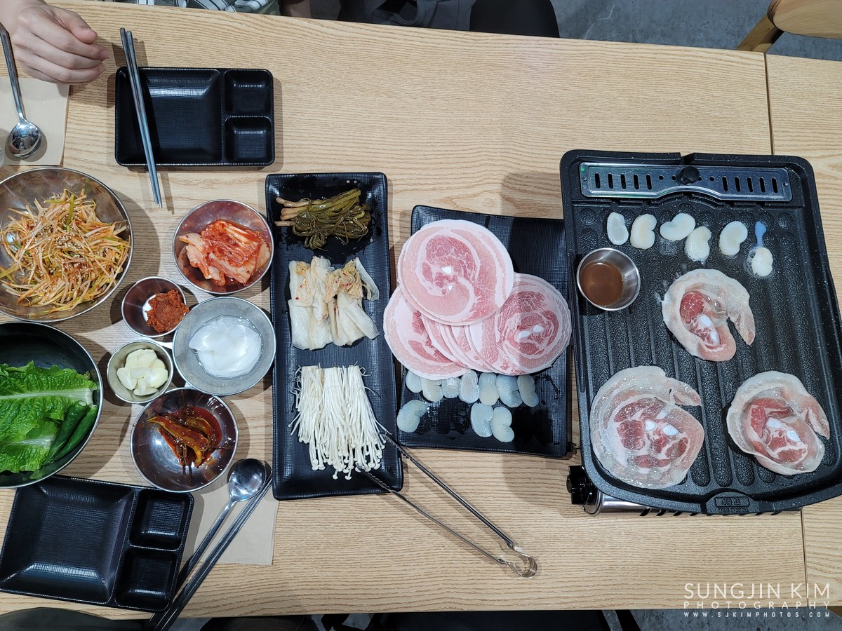 욕지도 맛집 중의 하나인 청춘식당의 꽃삼겹 정식...