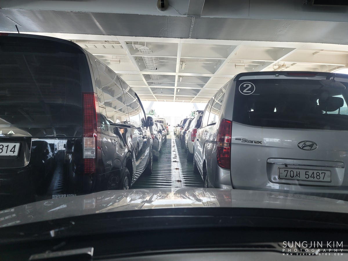 배가 욕지도에 도착하여 차를 타고 내릴 준비