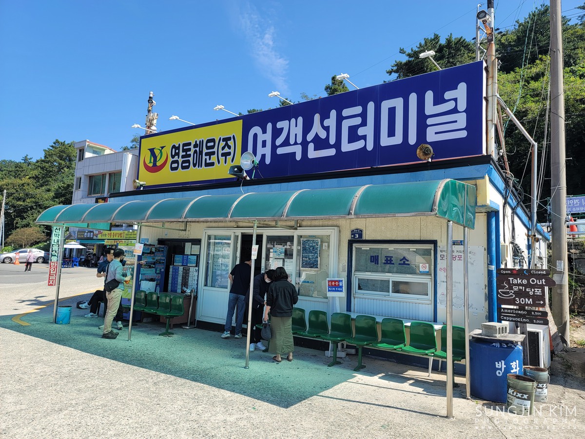 욕지도 들어가는 배를 타기 위해 삼덕항의 영동해운 매표소에 표를 사고 차를 싣고 들어갈 준비를 한다.
