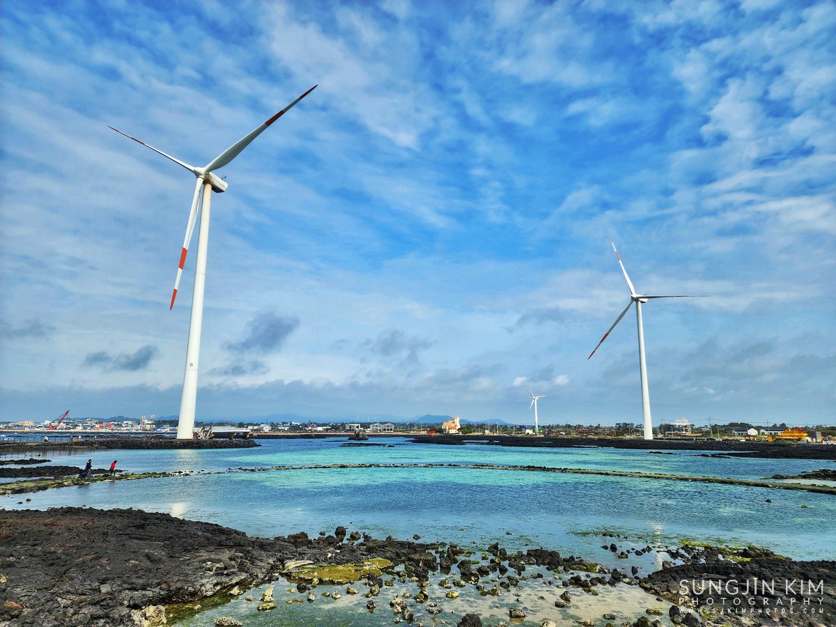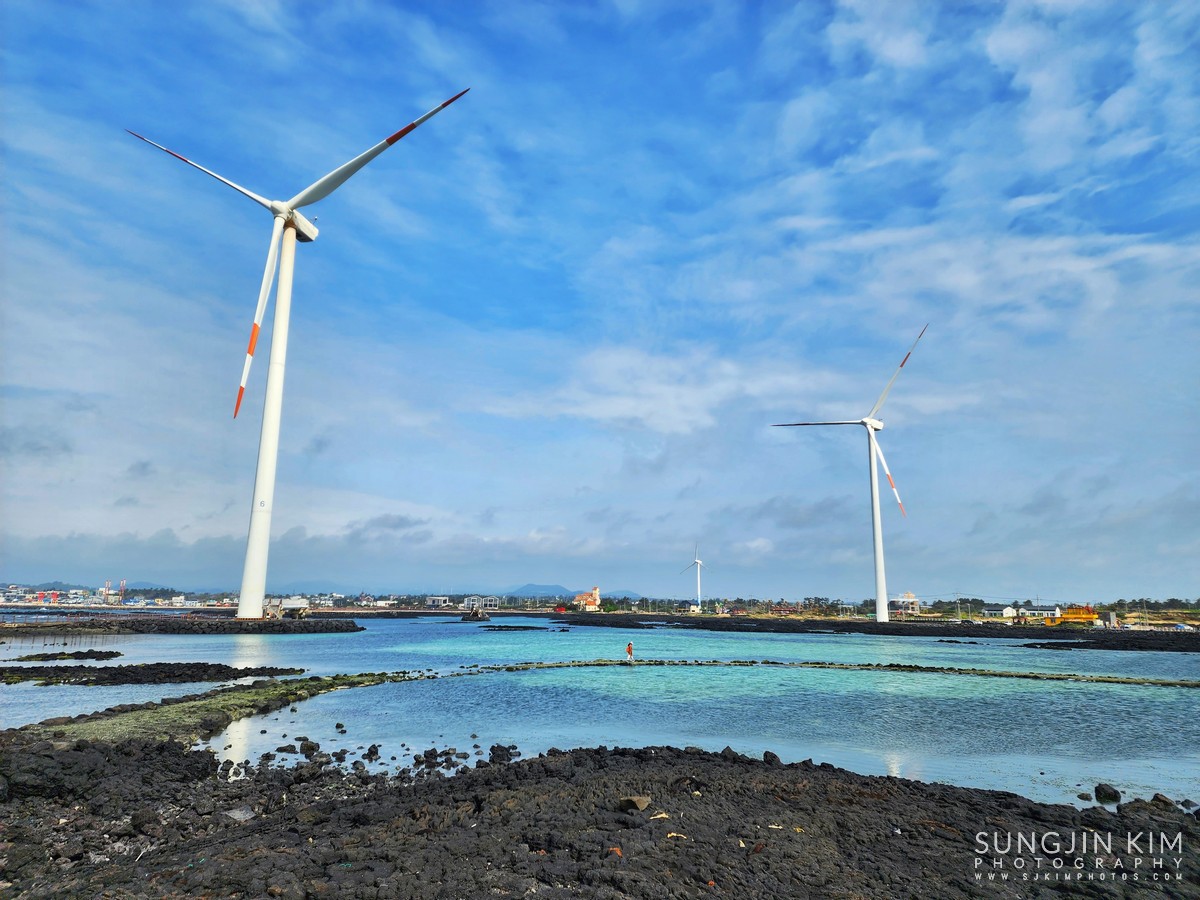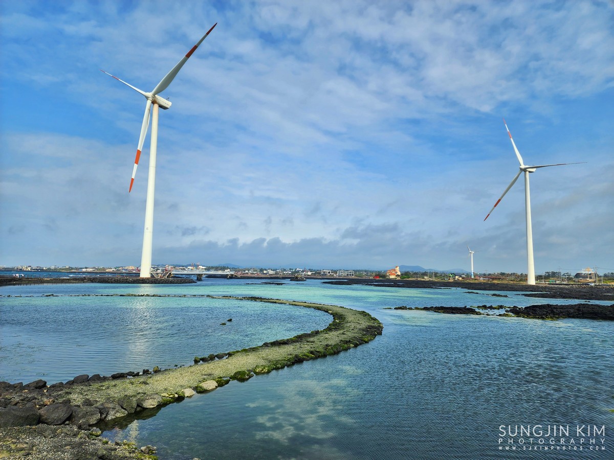 후식을 즐기고 다음으로 찾은 곳은 신창풍차해안도로. 바다에 떠 있는 듯한 풍력발전기가 줄지어 서 있어서 이국적이면서 바다 바람이 시원한 곳이다. 산책로를 따라 한바퀴 돌면서 원 없이 바람 맞고 왔다.