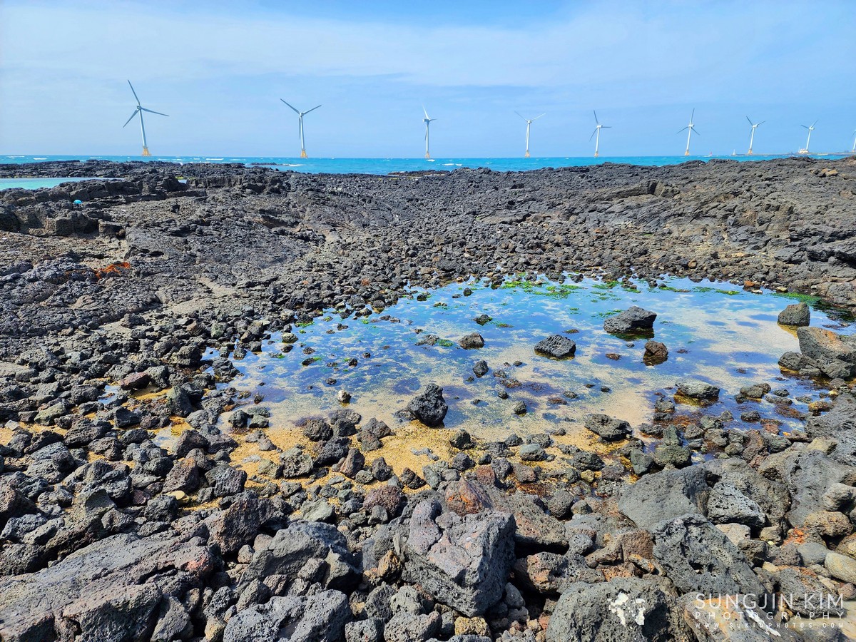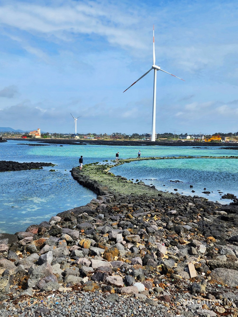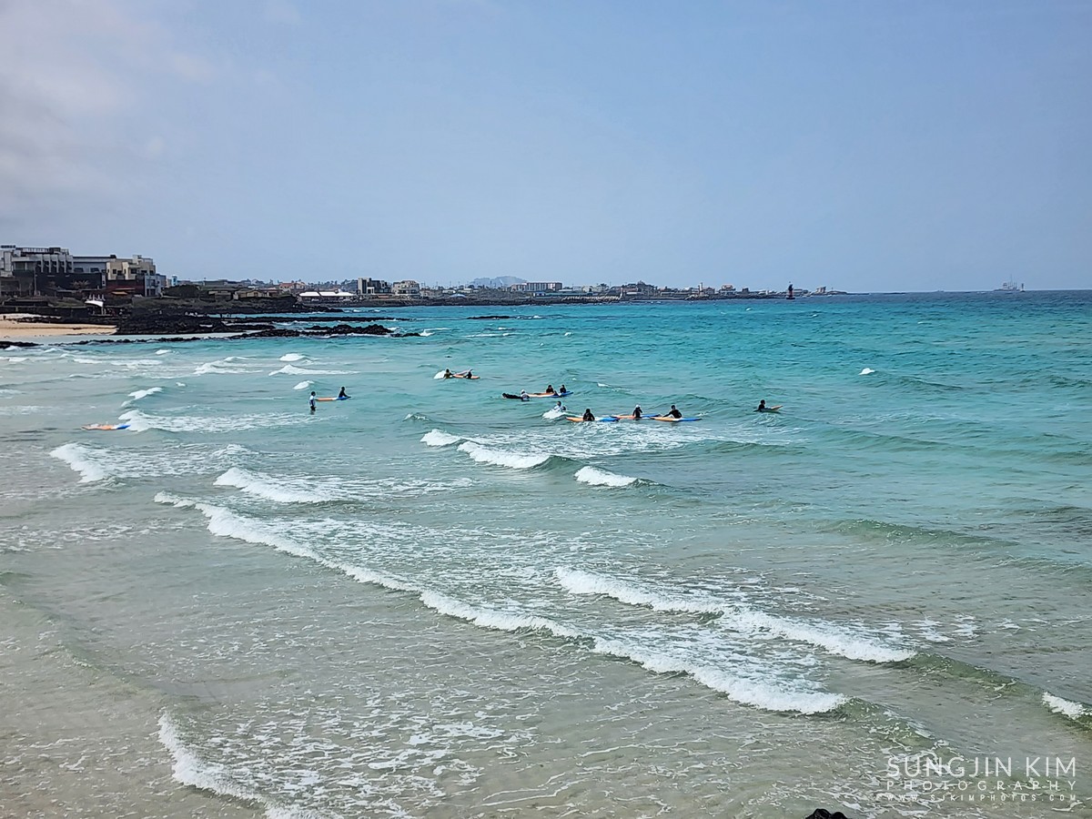 처음으로 들린 곳은 곽지해수욕장. 에메랄드빛 푸른 바다를 보니 약간은 힐링이 되는 느낌이었다.