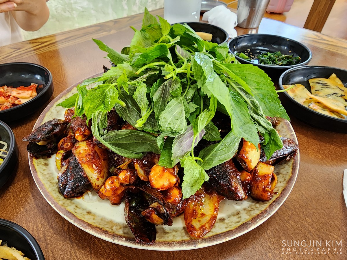 제주도에서의 마지막 식사는 소금바치 순이네에서 돌문어 볶음과 전복뚝배기로 마무리.