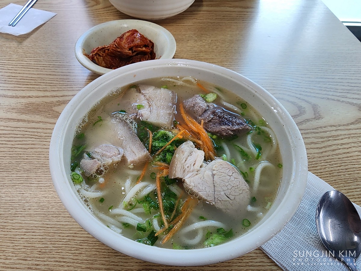 새벽 비행기를 타고 갔기 때문에 아침식사부터 해결하러 골막식당에서 고기국수를 먹었다.
