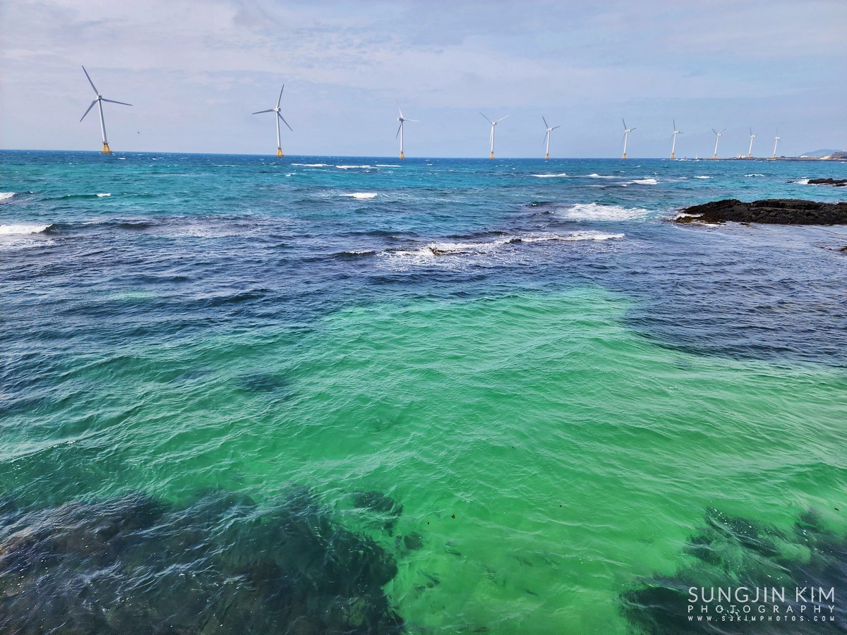 처음으로 들린 곳은 곽지해수욕장. 에메랄드빛 푸른 바다를 보니 약간은 힐링이 되는 느낌이었다.
