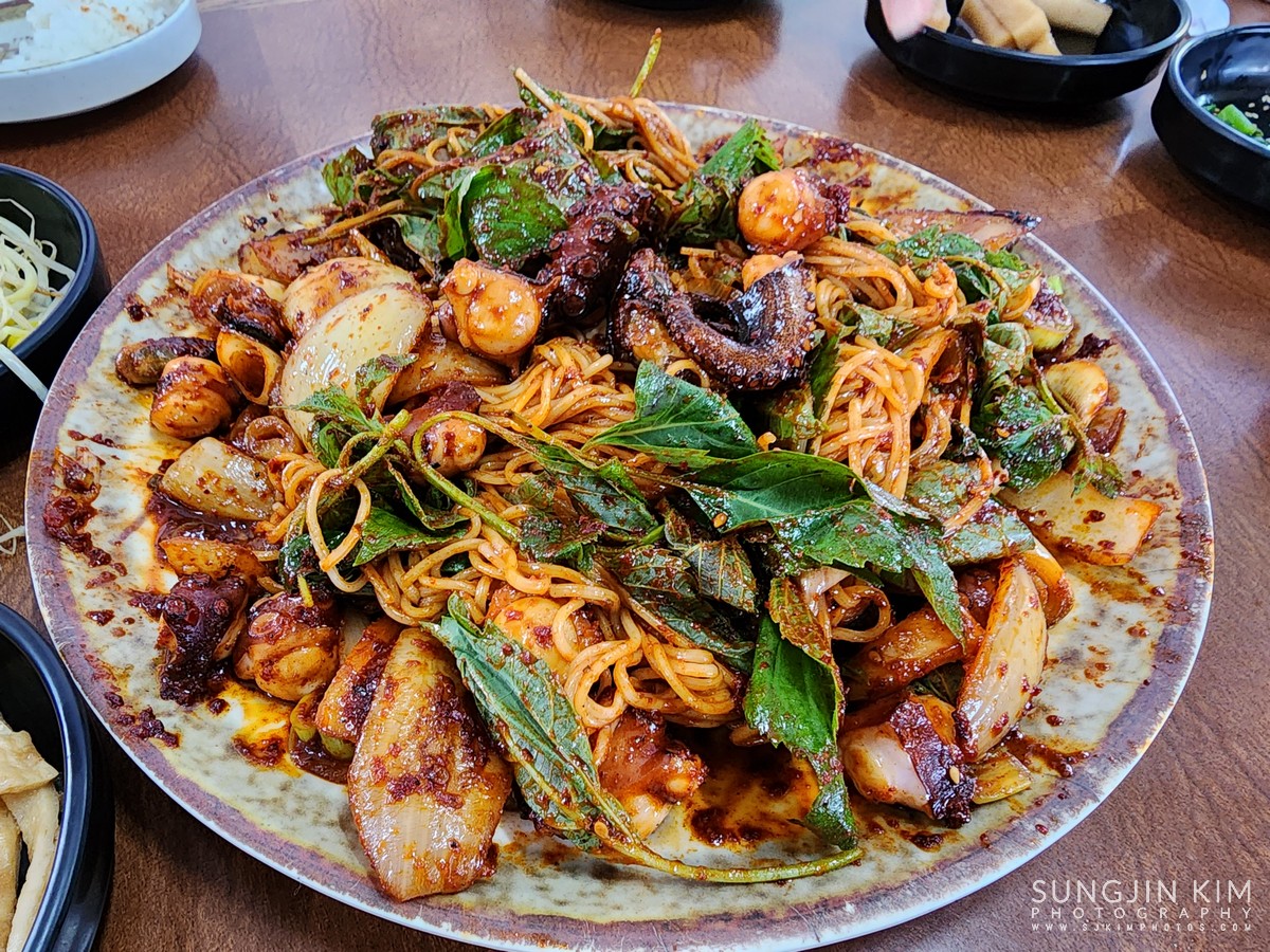 제주도에서의 마지막 식사는 소금바치 순이네에서 돌문어 볶음과 전복뚝배기로 마무리.