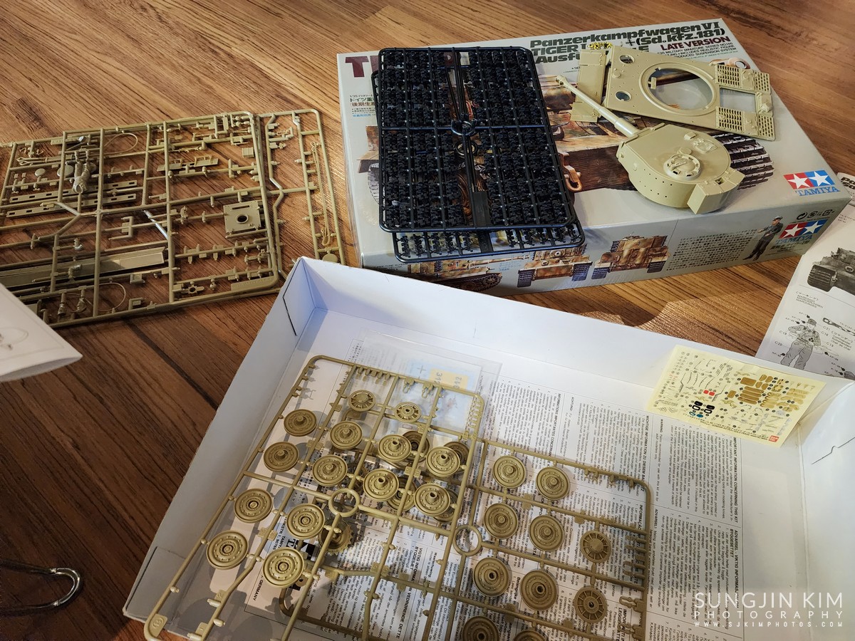 어느 날 몇 년 전에 아들이 학교 수업 시간에 만들다 말고 방치해둔 타미야의 후기형 타이거 전차 프라모델이 눈에 들어왔다. 박스를 열어 보니 포탑만 일부 만들다 말고 그렇게 몇 년을 방치 되어 있었다.