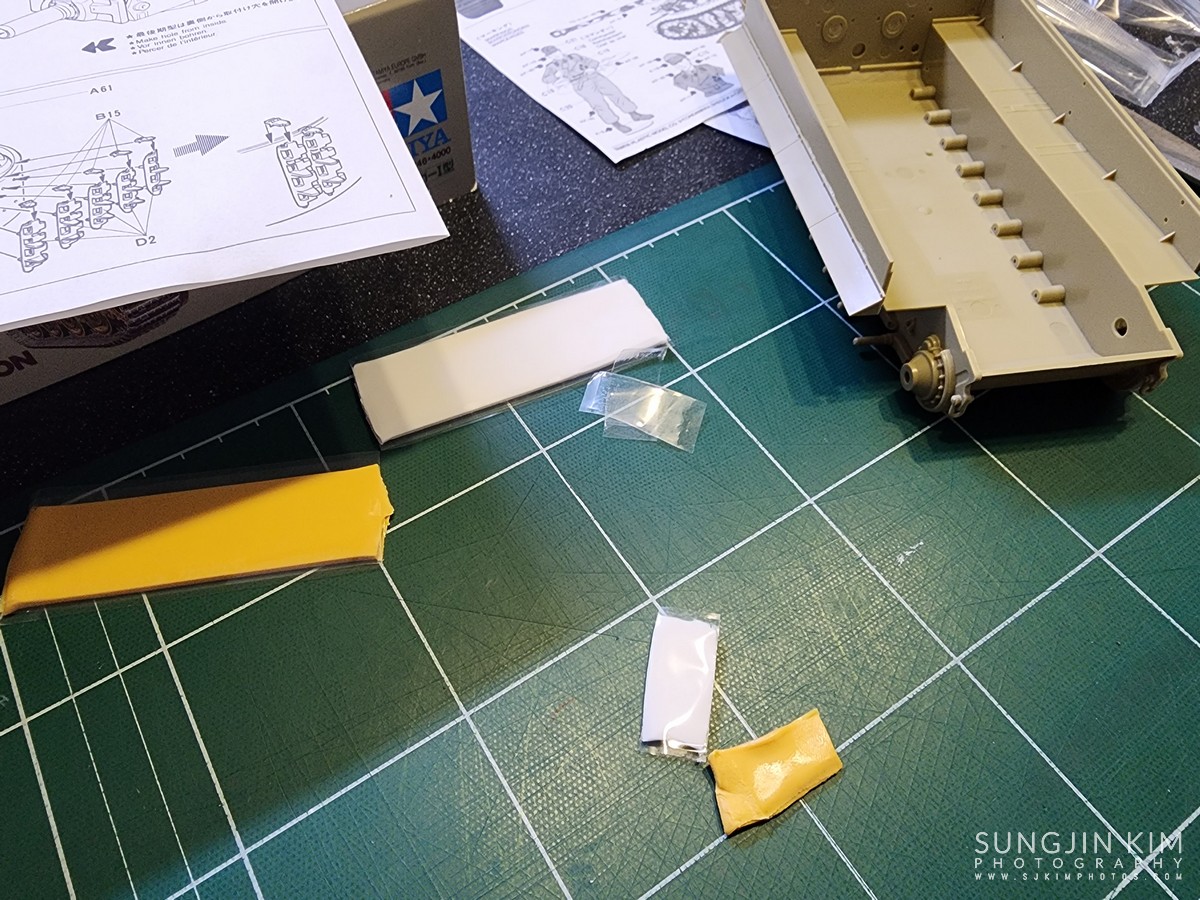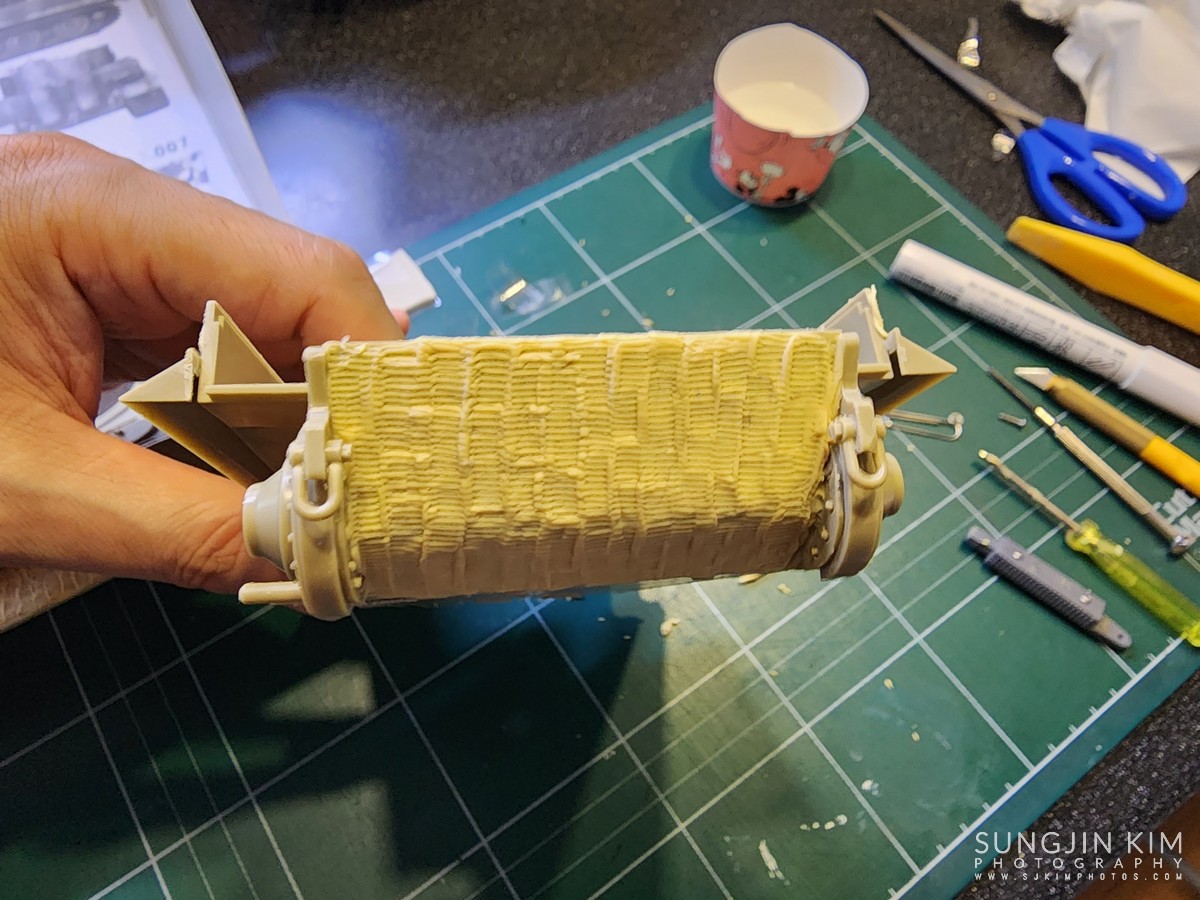 장갑에 짐머릿(zimmerit)을 표현하기 위해 타미야의 에폭시 퍼티도 구매해서 바르고 무늬를 표현했다.