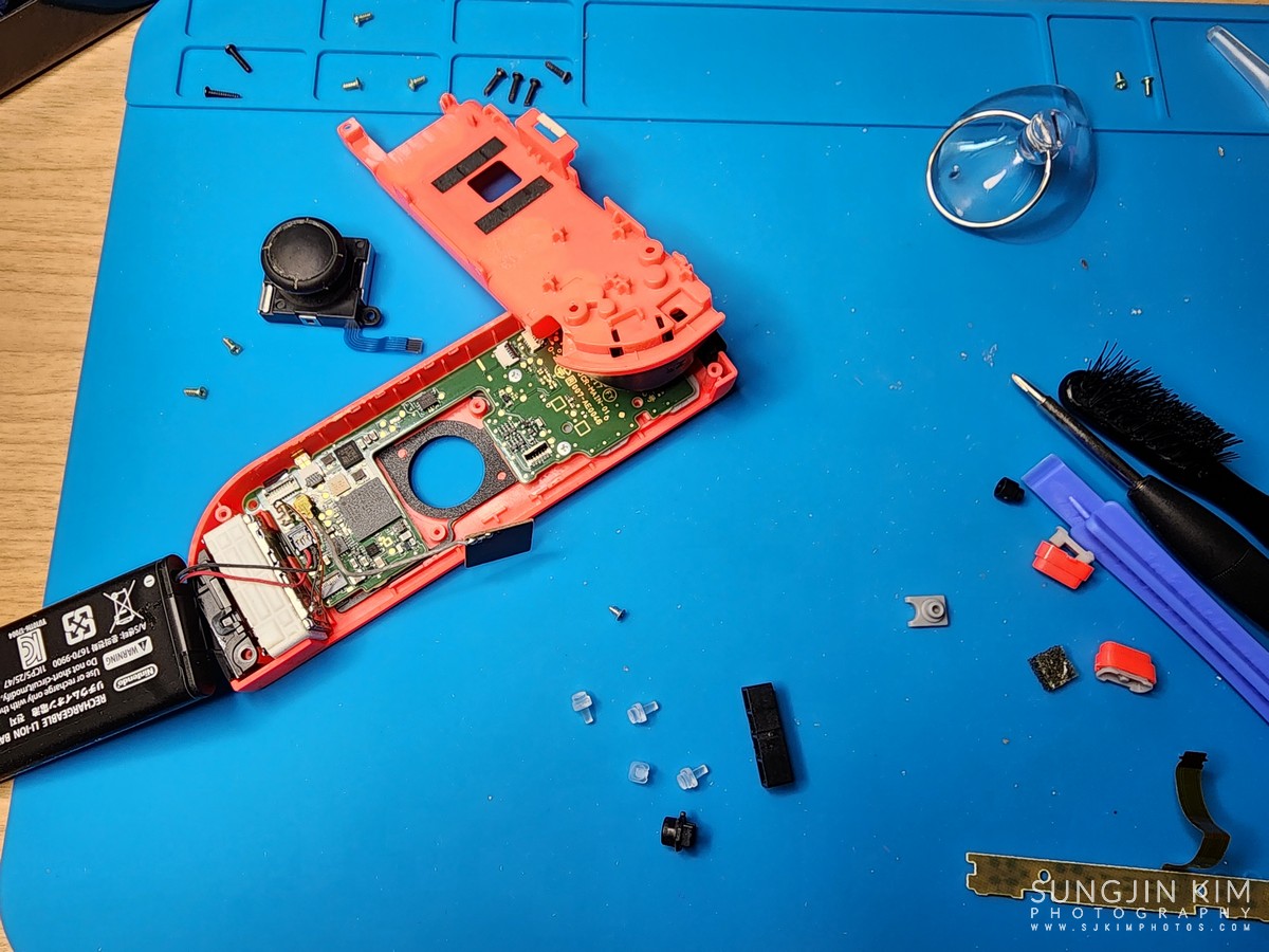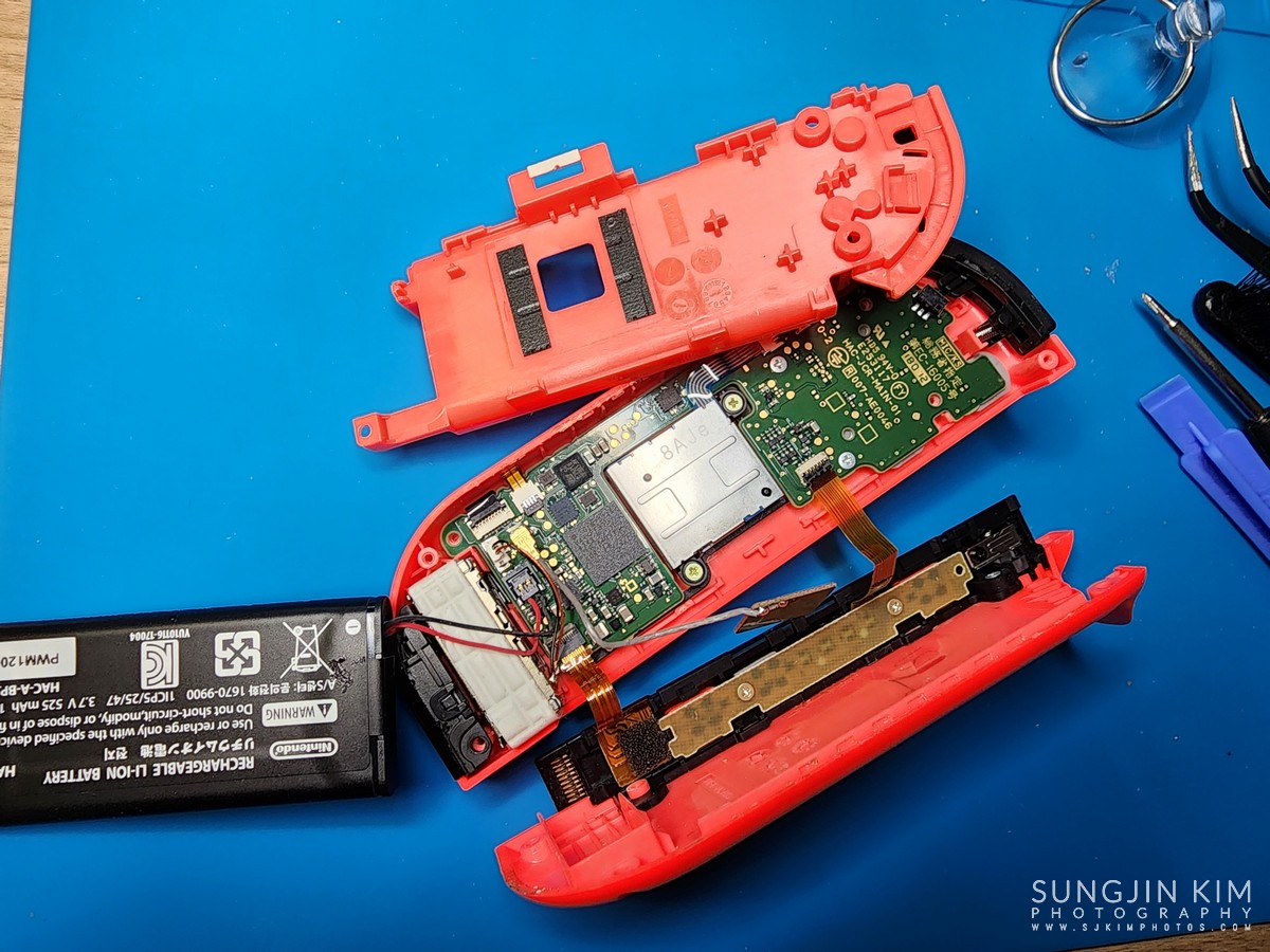 LED 나오는 부분의 투명 부속은 잃어버리지 않도록 주의한다. 조이콘 뿐만 아니라 대부분 노후된 부품들도 함께 교체해 주었다.