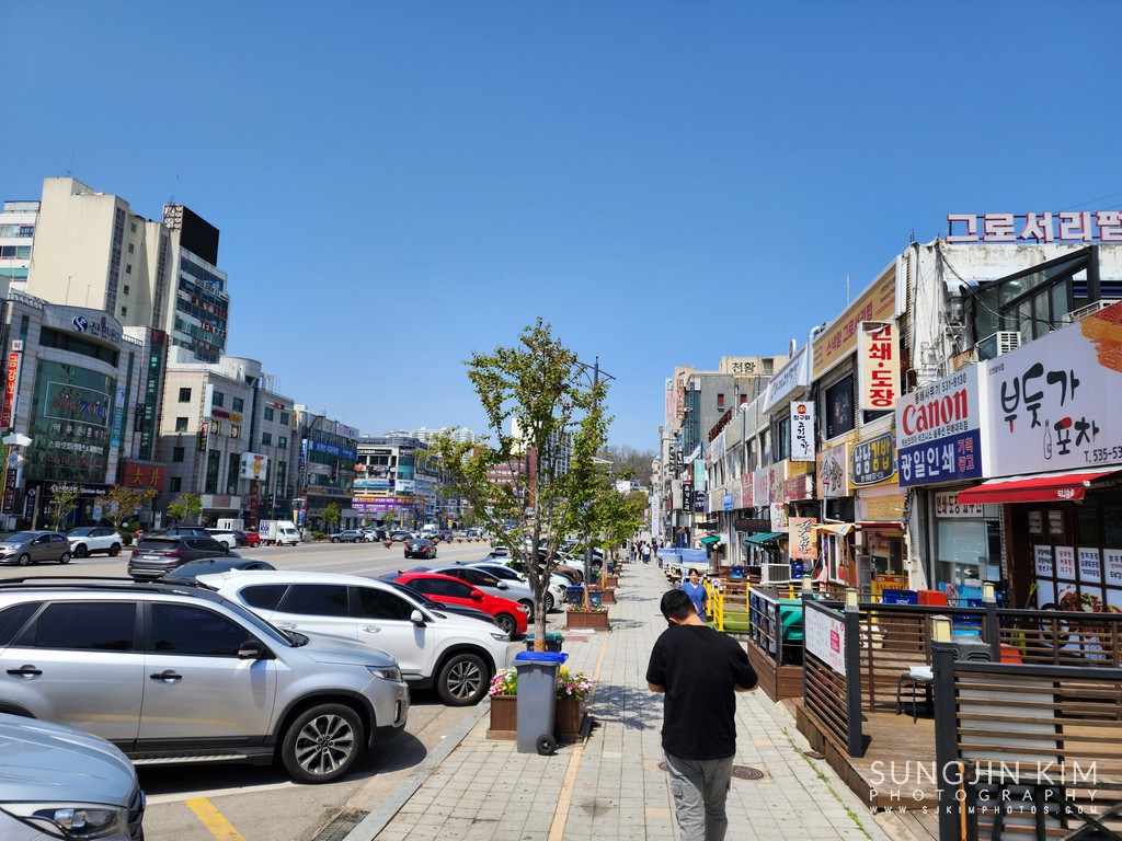 동해역에서 시내버스를 타고 시청 로터리 부근에서 내려서 최애 냉면집인 '냉면권가'로 향하면서 보이는 동해 시내 풍경