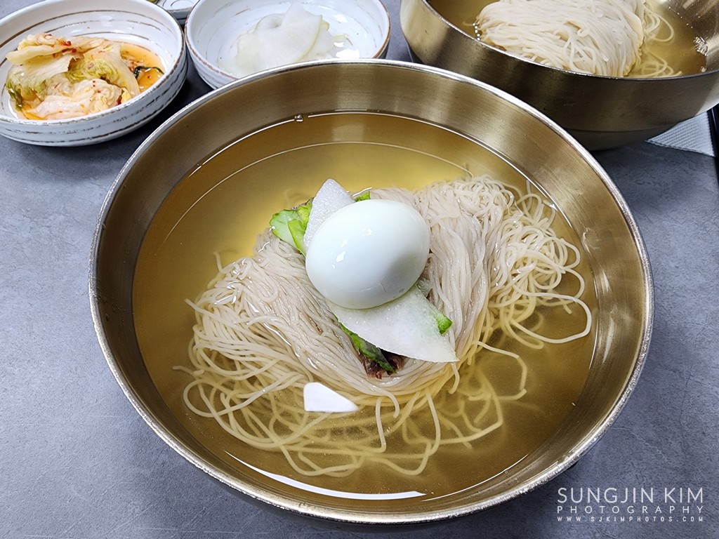 드디어 2년 만에 맛보는 냉면권가의 고소하고 시원한 육수가 일품인 평양냉면. 언제 또 올지 몰라서 사리까지 추가로...