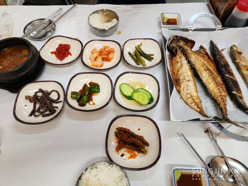 묵호 시내 구경을 마치고 서울로 올라가는 KTX를 타러 가다가 저녁을 먹기 위해 들린 생선구이집. 싼 가격에 아주 맛있게 먹었다.