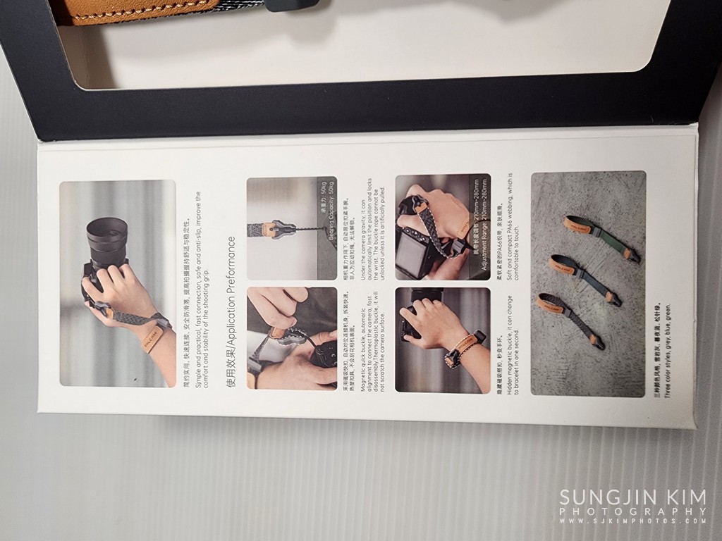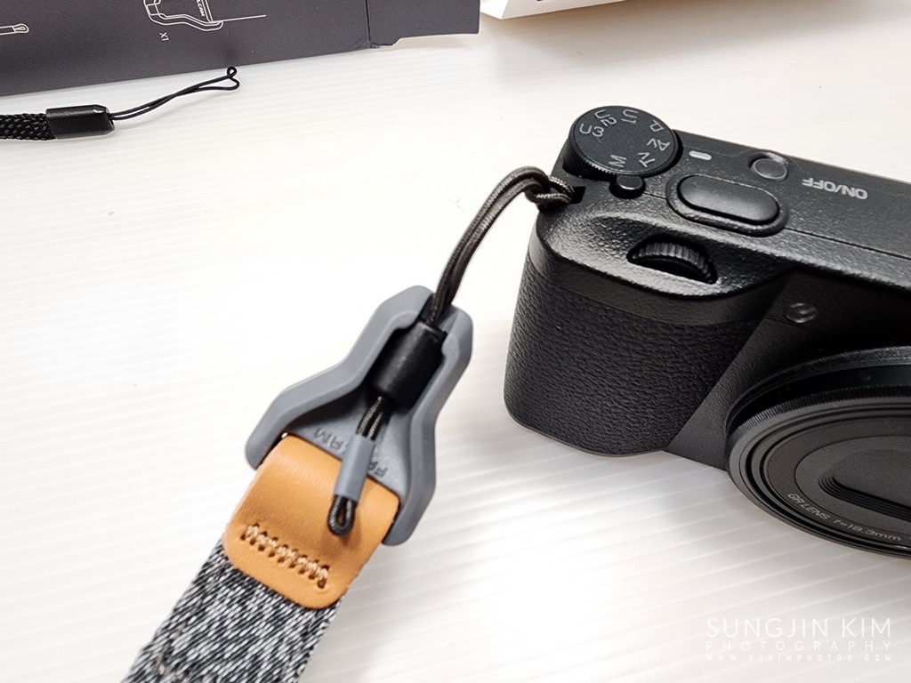 카메라에 직접 고정되는 스트랩과 손목에 차는 스트랩은 특수한 고리로 연결되는데 쉽게 빠지지 않도록 설계되어 있다.