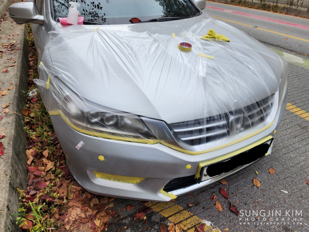 10년이 넘은 혼다 어코드의 앞범퍼에 있는 수 많은 돌빵과 인도에 긁은 자국들... 그리고 양심 없는 누군가가 긁어 놓고 도망간 자국들을 한 번에 저렴하게 해결하기 위해 작년 가을에 큰 마음을 먹고 자가 도색을 진행했다. 그리고 도료가 마르길 기다리는 동안에는 눈에 가시처럼 거슬렸던 뒷범퍼의 단차도 일부 조정하고...