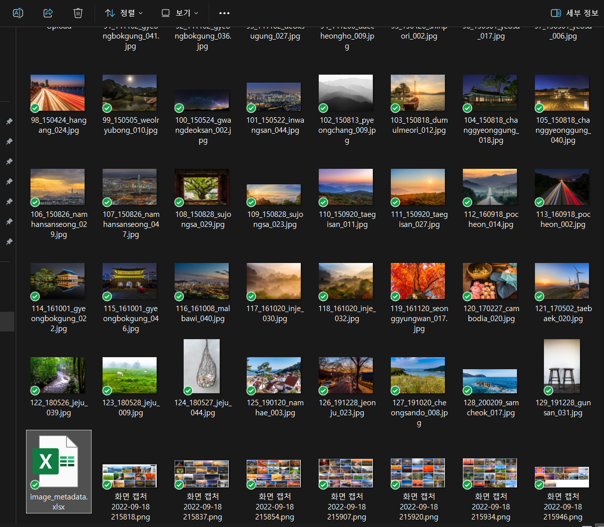 Python 스크립트를 실행해보니 일부 일출과 일몰 사진을 헷갈려하는 것 외에는 거의 99% 대만족이다. 특히 사진 중에 확연하게 인식이 가능한 우리나라의 유명한 관광지나 장소들은 제미나이가 자동으로 인식하여 제목과 설명에도 자동으로 기술해주는 것을 확인할 수 있었다.