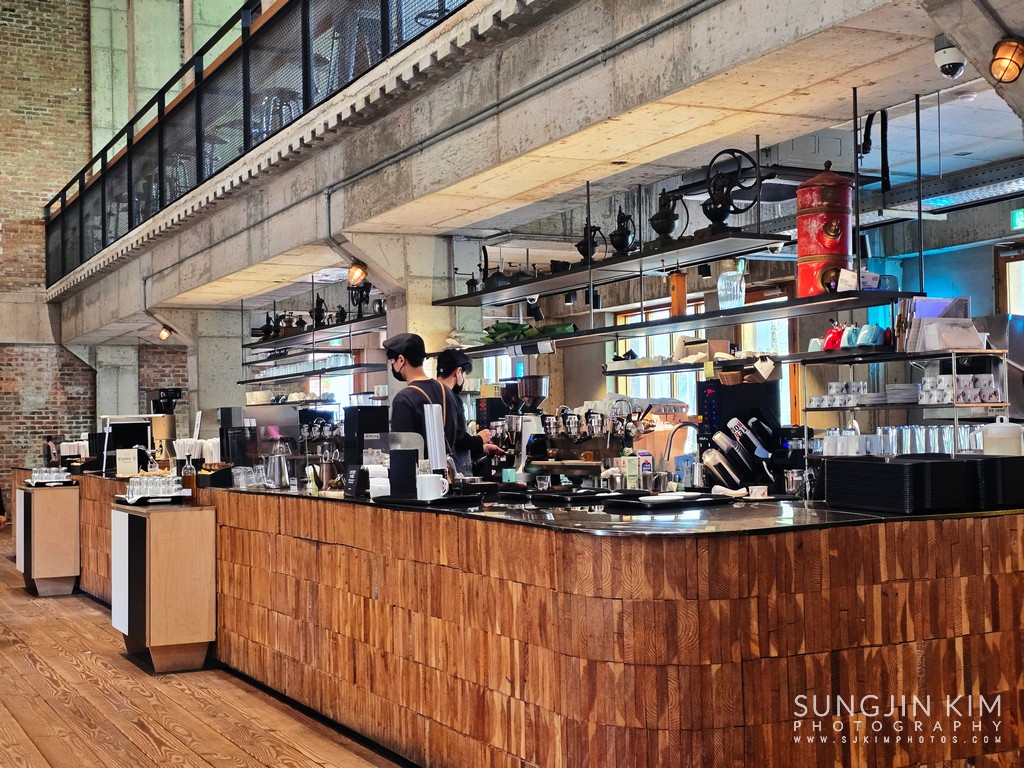 테라로사의 웅장한 인테리어가 진짜 압도적이었다. 나무와 콘크리트의 조화가 멋스러워. 천장이 진짜 높아서 탁 트인 느낌이 좋았다.