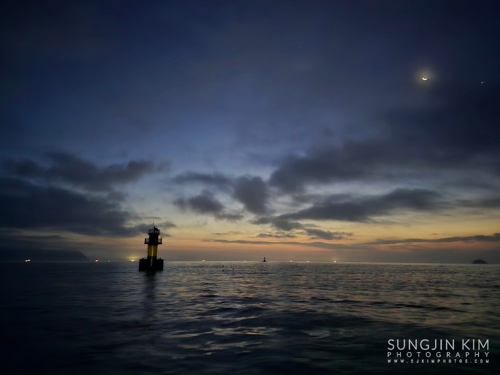 서서히 동이 트면서 초승달 옆 금성도 같이 보인다.