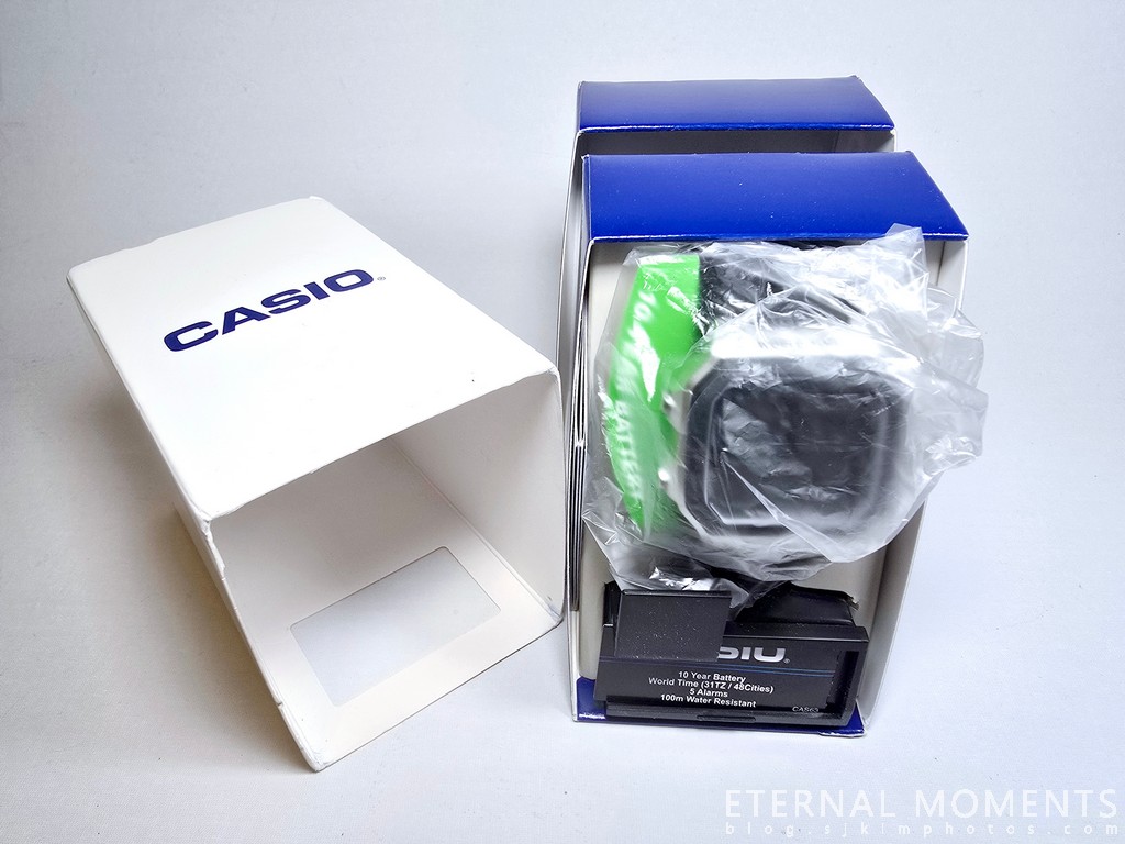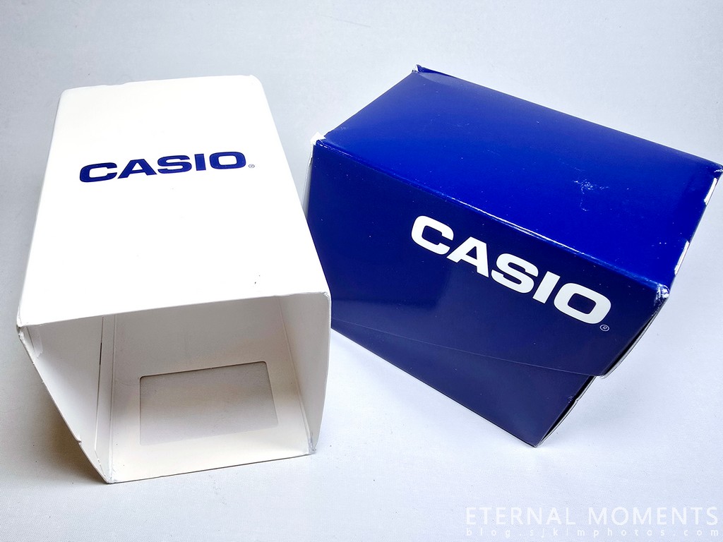 두 박스 모두 상단에 'CASIO' 로고가 선명하게 인쇄되어 있어 브랜드 아이덴티티를 명확히 보여줍니다.