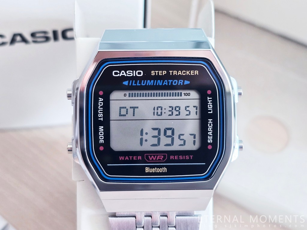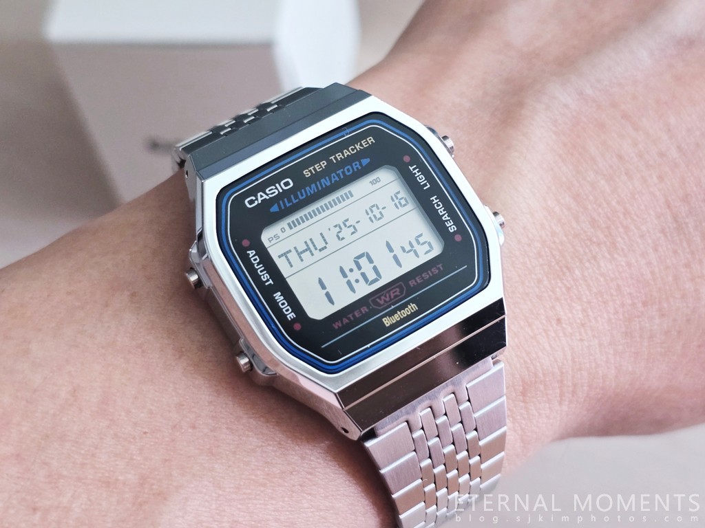 박스에서 꺼내 처음 손목에 찬 순간, "아, 이거다!" 싶었다. 레트로 디지털 워치의 클래식한 디자인에 스텝 트래커, 일루미네이터, 블루투스 연결 기능까지... 1980년대 감성과 2020년대 기술이 하나로 합쳐진 느낌이랄까?