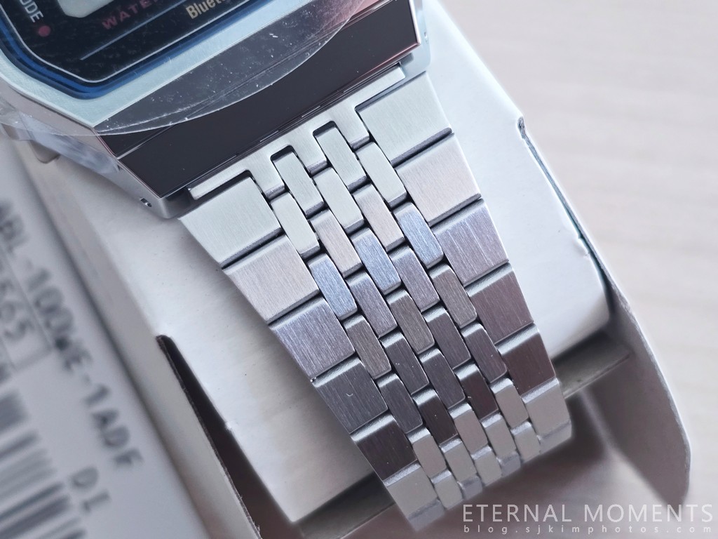 메탈 스트랩의 디테일을 보고 나는 완전히 빠져버렸다. 촘촘하게 이어진 브레슬릿 링크는 광택이 살짝 나면서도 브러시 처리가 되어있어 지나치게 번쩍이지 않는다. 손목에 감았을 때의 무게감이 딱 적당했다. 너무 가볍지도, 무겁지도 않은 그 중간의 밸런스가 정말 좋았다.