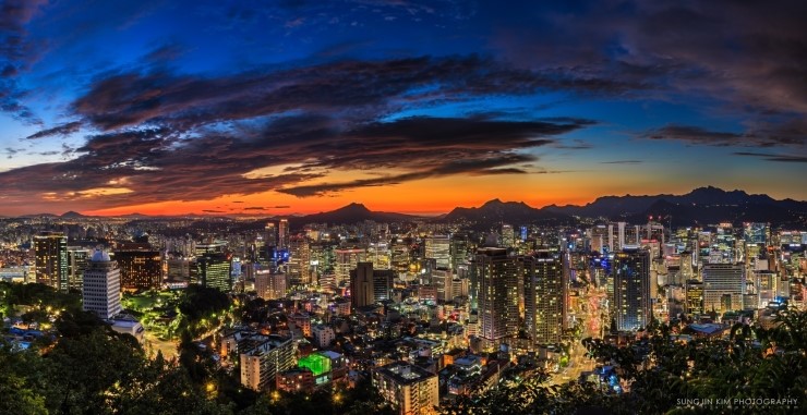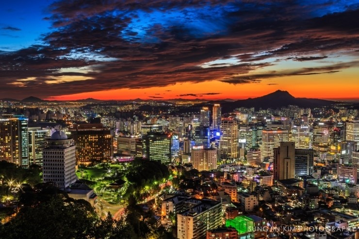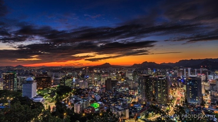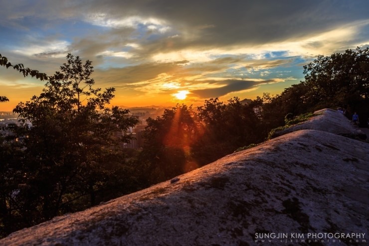 일몰시간이 가까워진 시간에 한참을 기다려 탄 남산을 오르는 순환버스가 이날 따라 더욱더 거북이 느림보처럼 느껴졌다. 버스에서 내리자마자 발걸음이 느린 와이프와는 나중에 만나기로 하고 촬영포인트로 미친 듯이 땀을 흘리며 달렸다. 이미 해는 지평선 너머로 내려가고 있었고 하늘은 119라도 불러야될 만큼 불타고 있었다. 급한 와중에 남산도서관쪽으로 내려가는 계단 방향에 있는 잠두봉 포토아일랜드의 위치가 이날 따라 제대로 생각이 나지 않아 케이블카 타는 곳 부근에서 헤매고 있었다. 그렇게 시간을 허비했지만 다행히 평소에는 담을 생각도 못했던 구도의 사진도 담게 되어서 다행이었다.