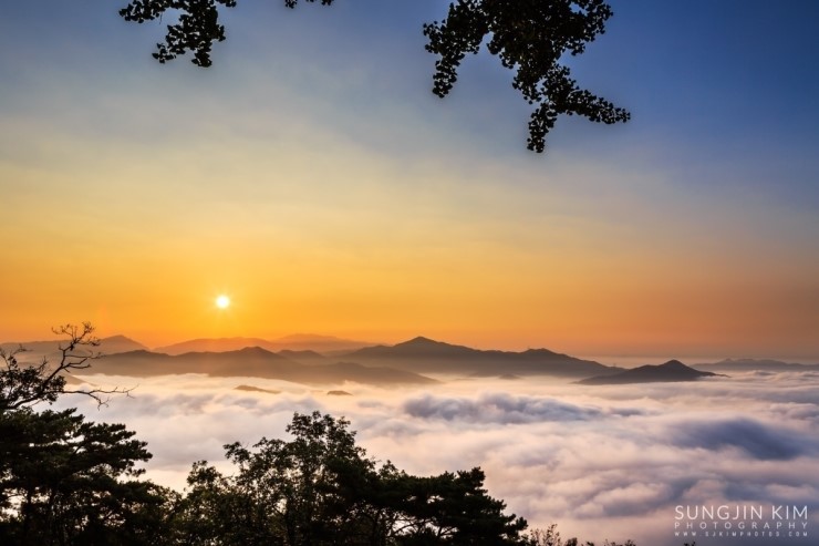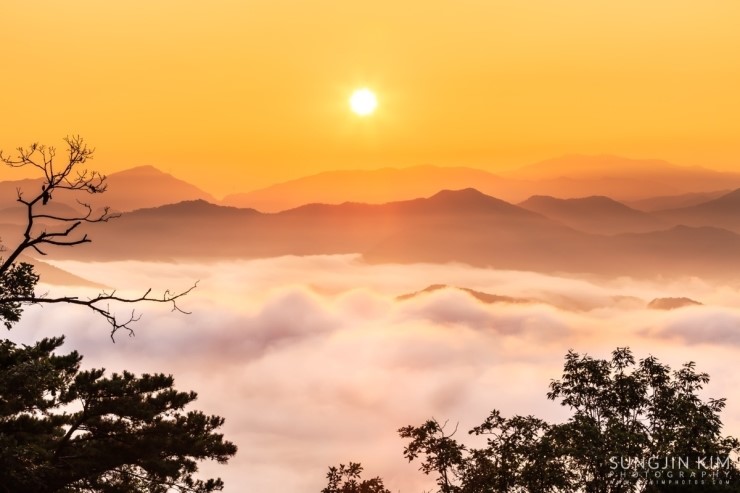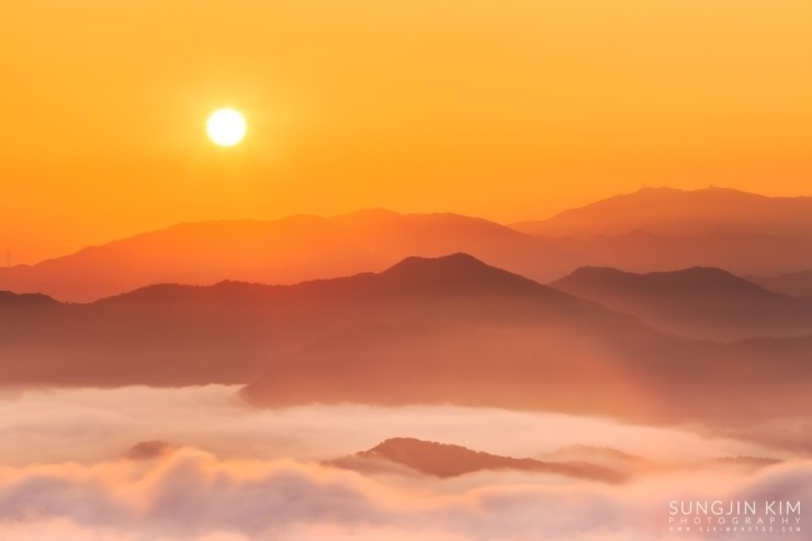 아직 본격적인 운해 시즌이 아니어서 그런지 사진 찍으러 온 사람들은 생각보다 많지 않았다. 처음에는 어둠에 눈이 익숙하지 않아 운해를 제대로 분간하지 못하고 실망을 했으나 조금 지나 자세히 보니 강을 따라 운해가 몰려들고 있었다. 시간이 지남에 따라 산능선 너머에서부터 주황빛으로 물들면서 여명이 밝아 오고 있었는데 산 아래 하얗게 깔린 운해와 함께 아름다운 풍경이었다.