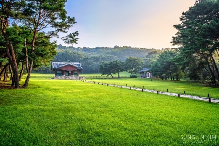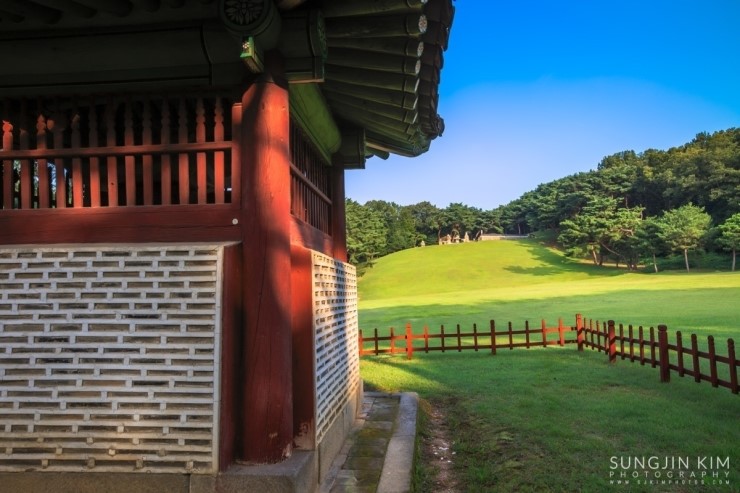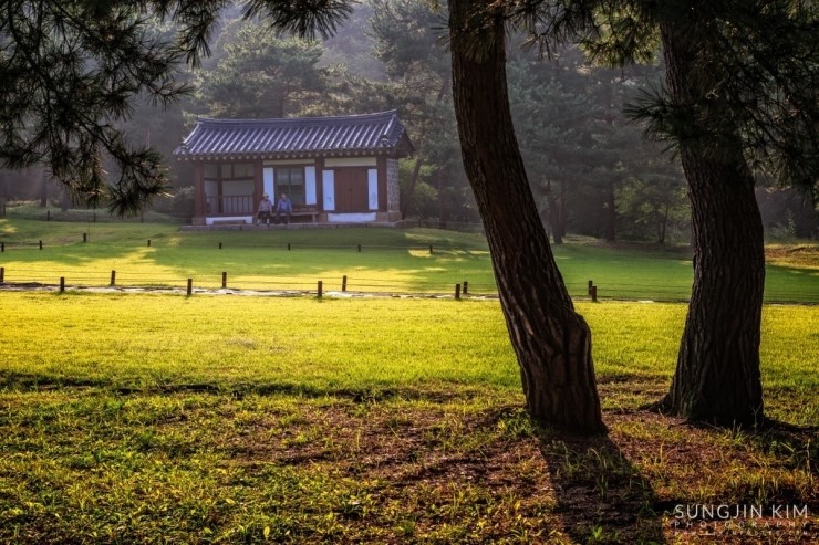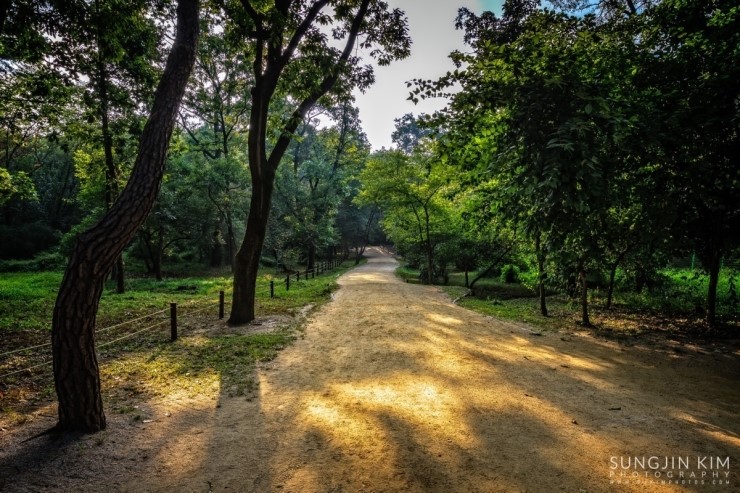 꽤 넓은 곳이라 모든 곳을 다 촬영하기는 힘들기 때문에 찾아오기 전부터 지도와 홈페이지를 통해 미리 찍을 위치를 조사해 두었는데 경릉이 있는 곳이 주변 소나무숲도 아름답고 초록잔디를 가르며 정자각까지 이어지는 신도와 어도도 길이가 다른 왕릉에 비해 길기 때문에 원근감이 풍부하게 담을 수 있다. 해가 뜨기 전부터 경릉에서 대부분의 시간을 보내며 정신없이 담았는데 아쉽게도 아침안개가 원하던 수준에서 한참 모자랐다. 아쉬움을 뒤로 하고 새벽부터 정신없이 사진을 찍으며 돌아다니느라 허기진 배를 채우러 발길을 돌렸다.