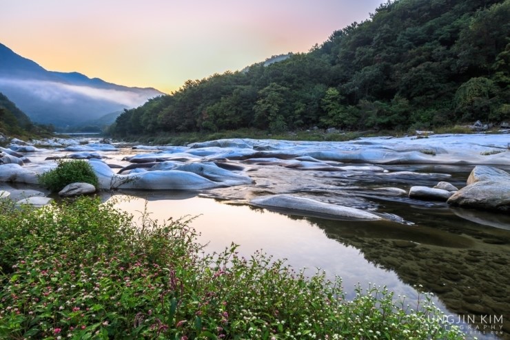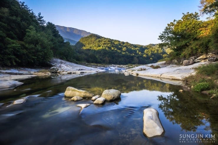 서둘러 장비를 챙겨서 계곡 아래로 내려가 여기저기 바위를 밟으며 곡운구곡의 아름다운 풍경을 담기에 정신 없었다. 날씨 좋은 여름에 놀러와서 돗자리 깔고 물놀이를 즐겨도 그만일 것 같은 곳이었다.
