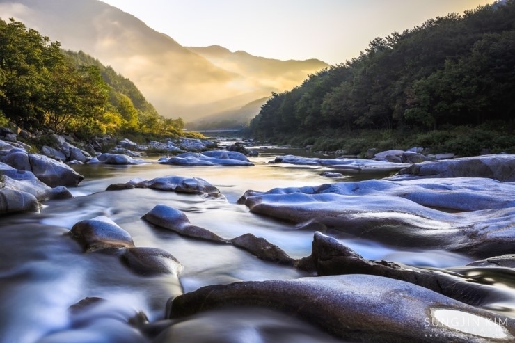 서둘러 장비를 챙겨서 계곡 아래로 내려가 여기저기 바위를 밟으며 곡운구곡의 아름다운 풍경을 담기에 정신 없었다. 날씨 좋은 여름에 놀러와서 돗자리 깔고 물놀이를 즐겨도 그만일 것 같은 곳이었다.