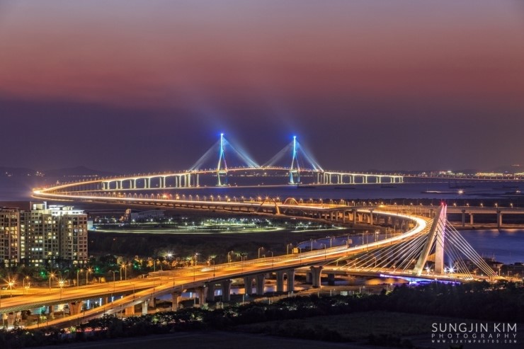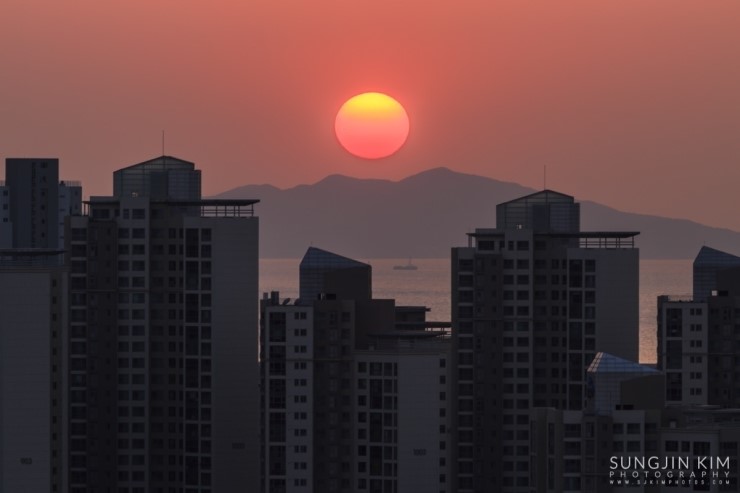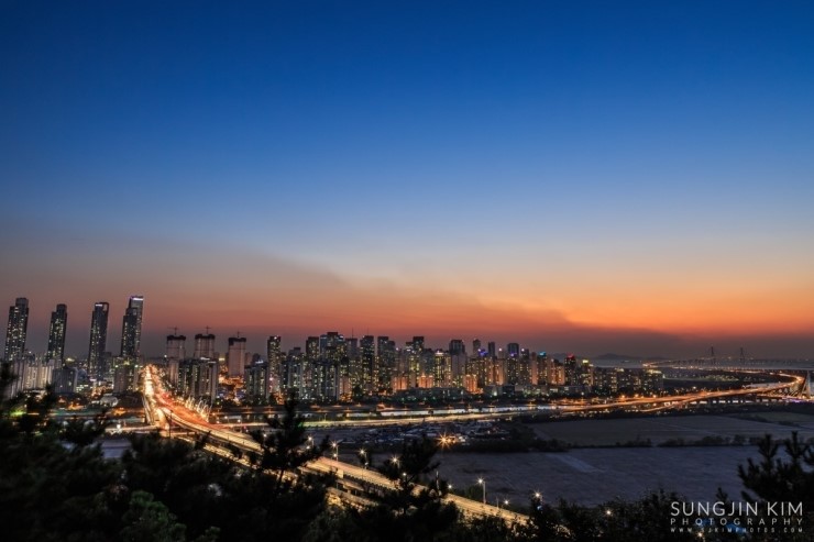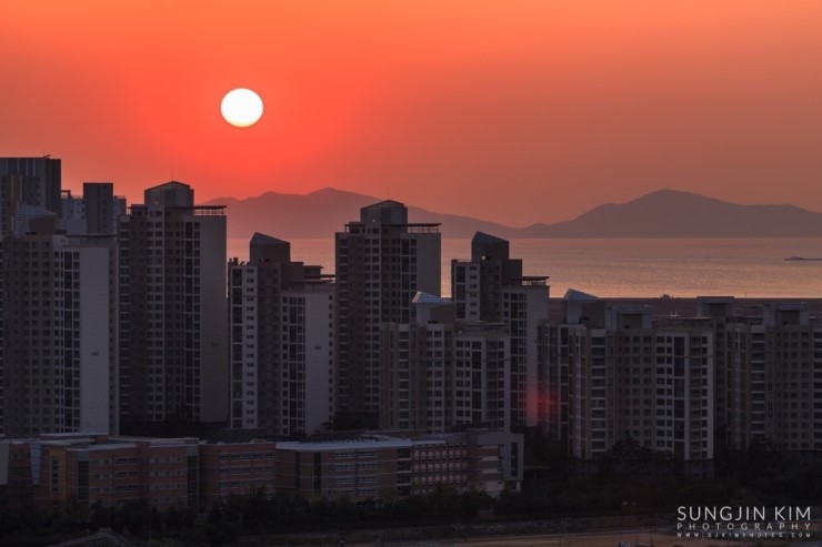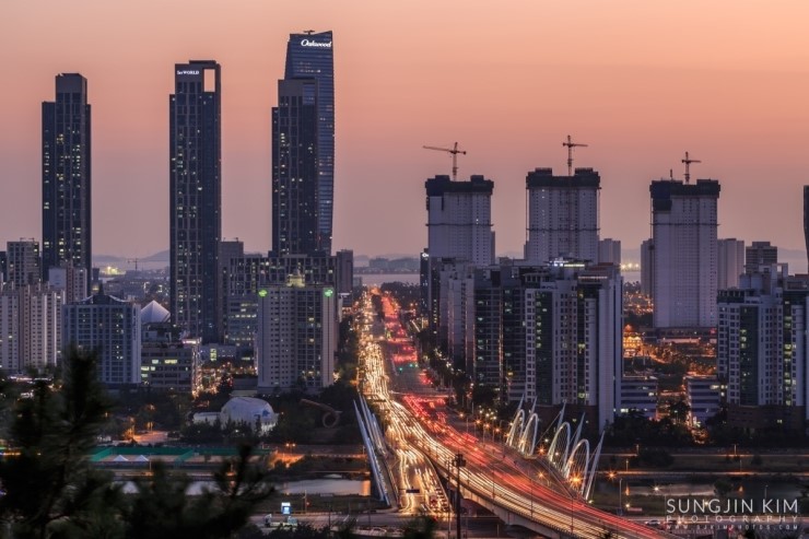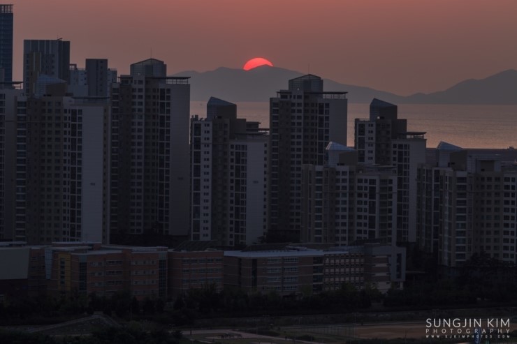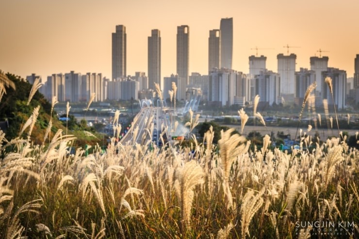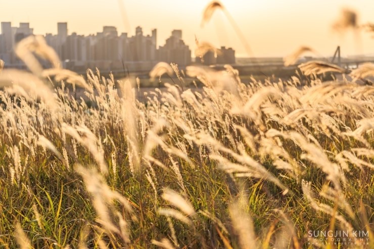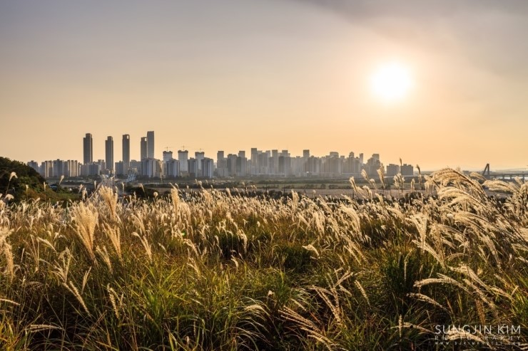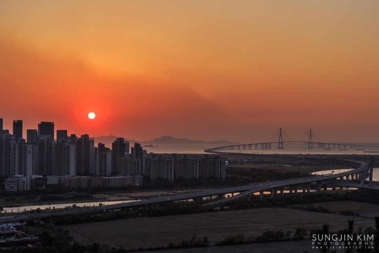 집에 있다가 창 밖의 날씨를 보니 어디론가 사진을 찍으러 가고 싶어지게 하는 날씨였다. 얼른 John한테 연락을 해서 오랜만에 송도를 담기로 한다. 약속했던 동춘터널 위의 공원에서 만나서 억새를 배경으로 송도의 모습을 잠깐 찍다가 언덕 너머에 있는 협소한 포인트로 자리를 잡으러 갔다. 해가 지기를 기다리는 내내 그 협소한 공간에 꽤 많은 사람들이 몰렸다. 역시 인터넷의 힘이다..