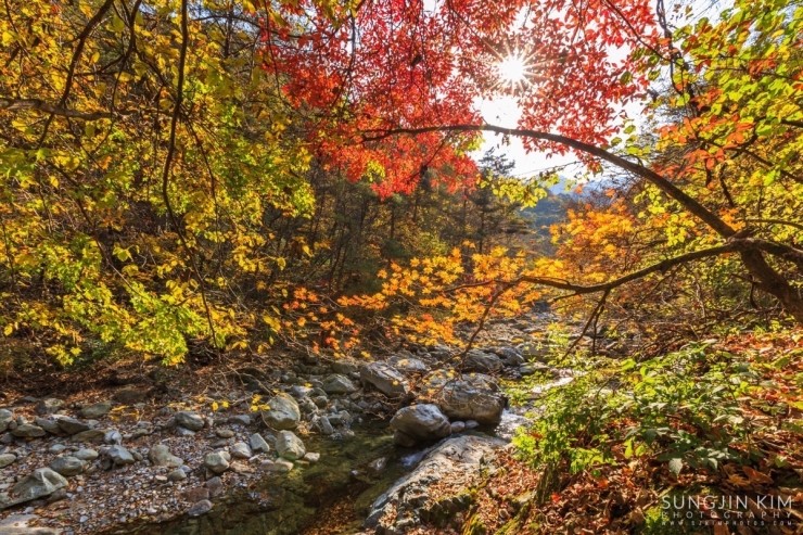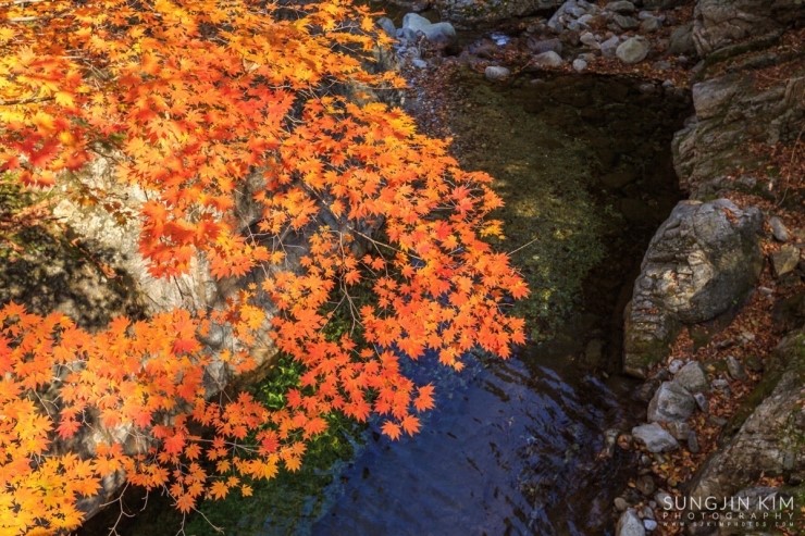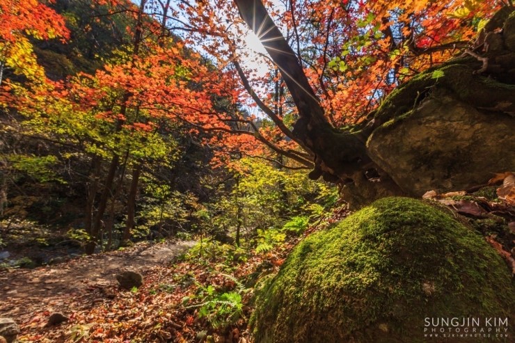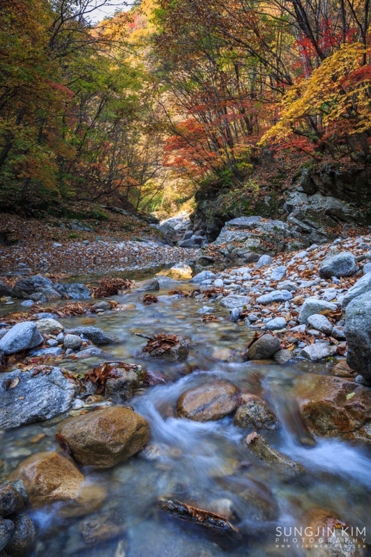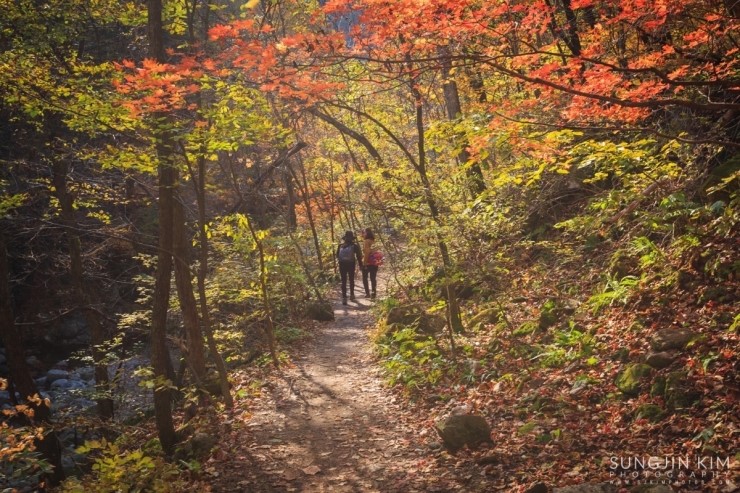 고성의 천학정에서 일출 출사를 마치고 속초의 유명한 맛집인 두부집에서 꿀맛 같은 아침식사를 마치고 얼마 걸리지 않아 원래의 목표였던 십이선녀탕에 도착하였다. 밤도 꼴딱 새고 워낙 저질 체력이라 원래부터 끝까지 올라갈 생각은 하지 않았고 쉬엄쉬엄 다니면서 예쁘게 물들은 단풍을 담는게 목적이었다.