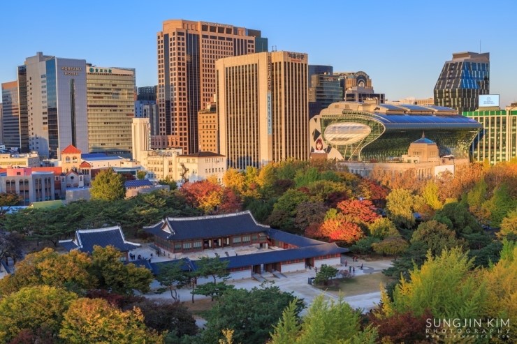 생각날 때마다 종종 가게 되는 덕수궁이지만 이번에는 다른 때와 달리 인접한 건물 옥상에서 새로운 구도로 담을 수 있었다. 사전에 관계자의 협조를 받아 공식적으로 옥상을 방문했기에 참 편안한 마음으로 촬영에 임할 수 있었다.