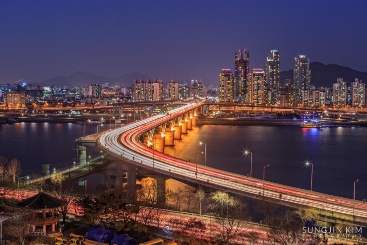 청담역에서 그리 멀지 않아서 네이버지도를 보면서 찾아 갔는데 강가의 높은 곳에 있어서 그런지 바람이 제법 매서웠다. 날씨도 추워서 공원에는 나 혼자였는데 공원에서 바라보는 뷰가 제법 괜찮은 편이었고 북쪽, 동쪽으로 청담대교와 올림픽대로의 자동차궤적이 멋지게 담겨졌다.이쪽저쪽 계속 바삐 왔다갔다 하며 담느라 그리 추운 걸 못 느꼈지만 얼굴은 어느 새 감각을 잃어가고 손가락끝도 아려와서 서둘러 담고 돌아왔다.