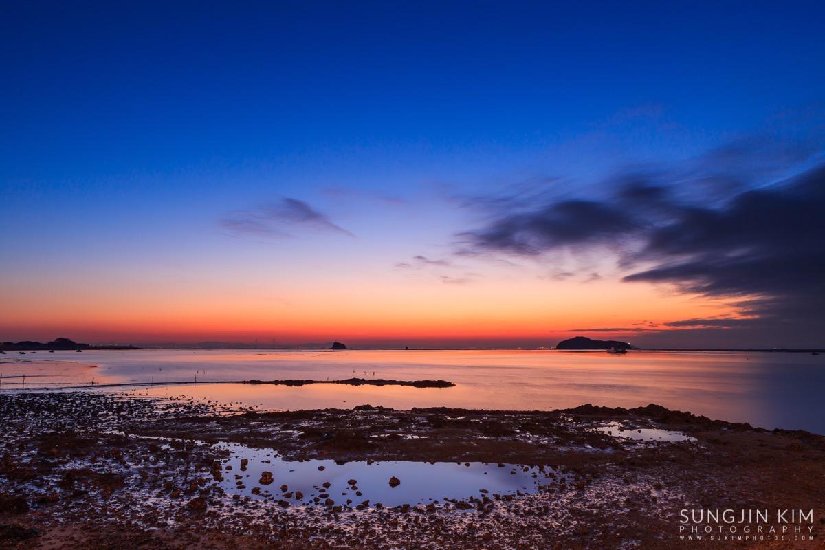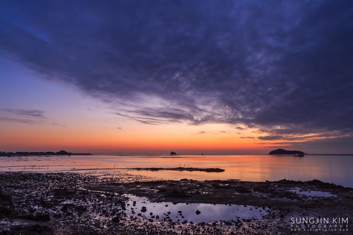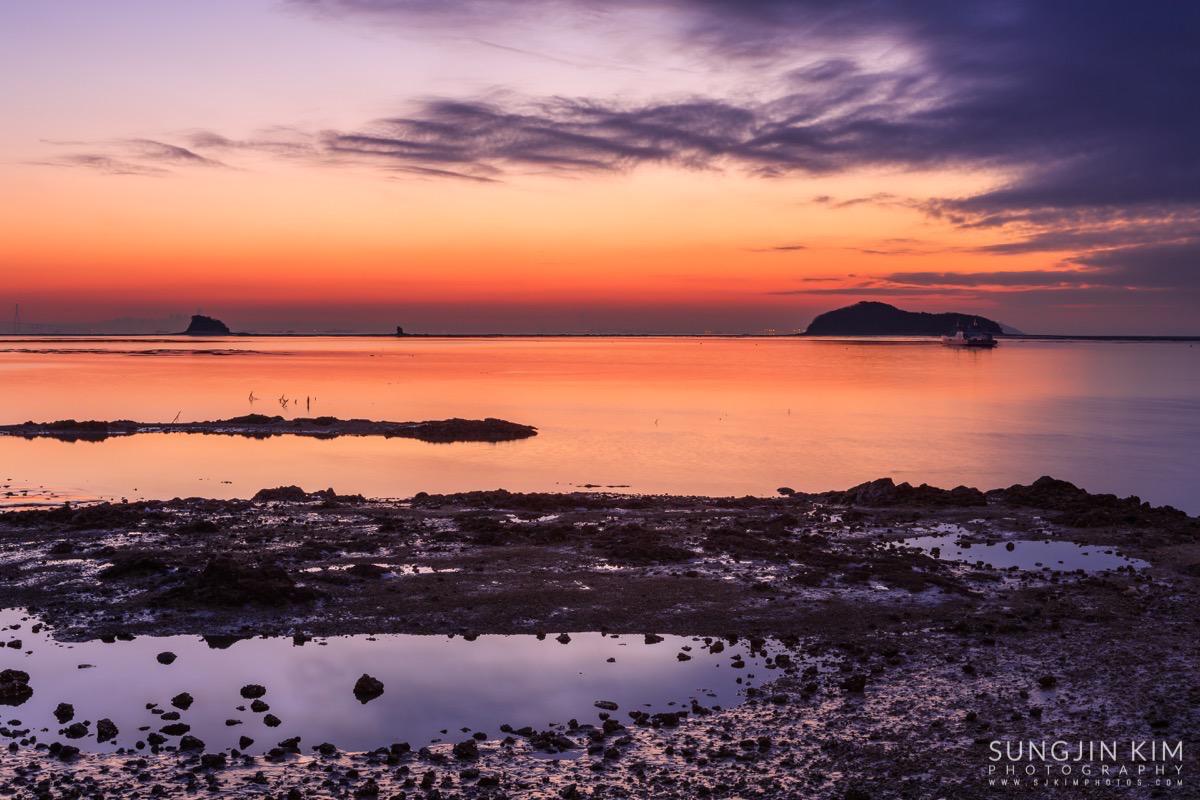 처음에는 상어지느러미 모양의 매도랑을 담을까 하다가 그 곳은 일출각 때문에 좀더 초입 쪽으로 이동해야 해서 그냥 바로 옆의 사렴도라는 작은 섬 옆으로 올라오는 일출을 담았다.