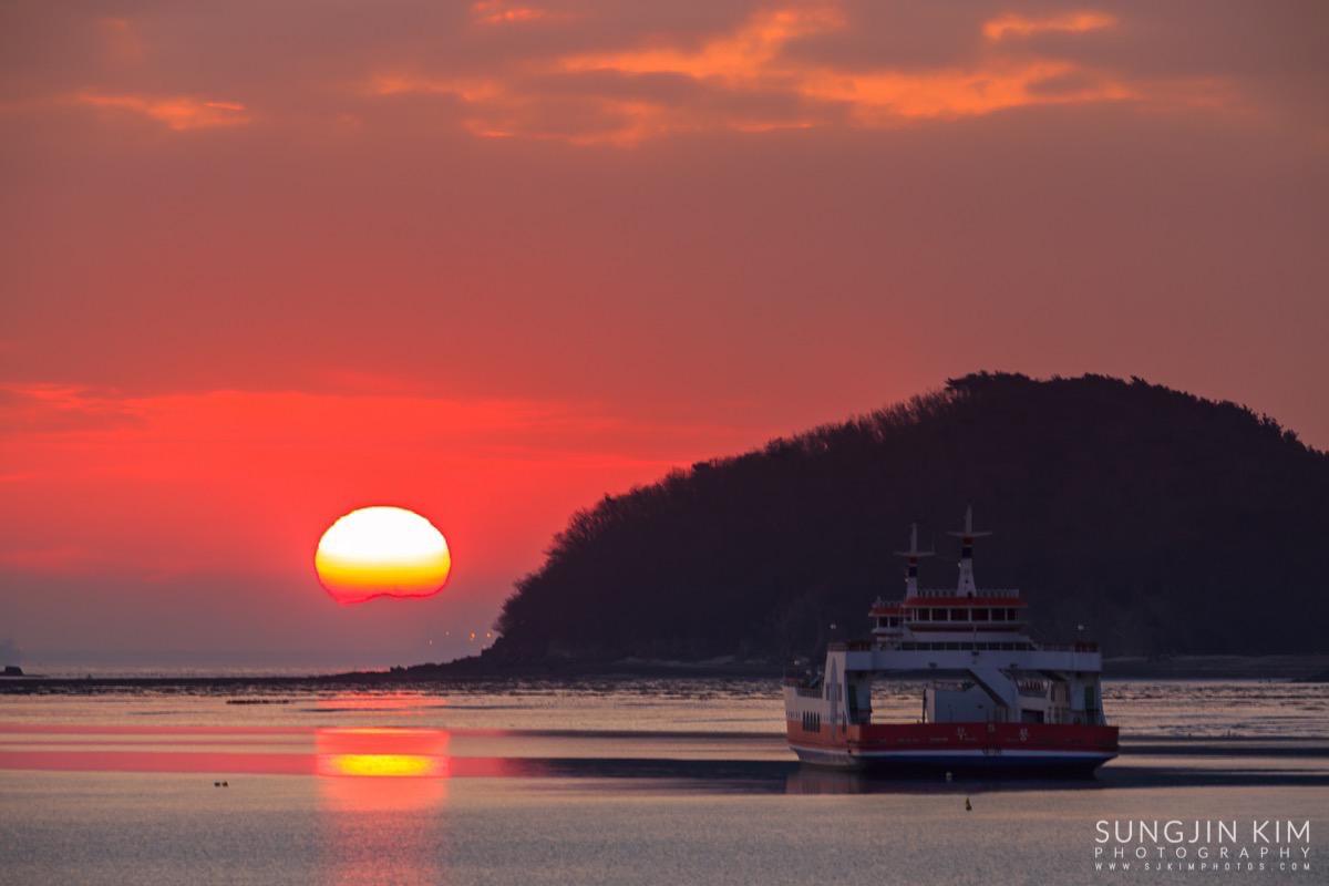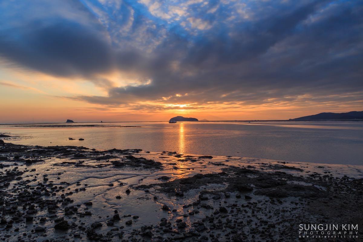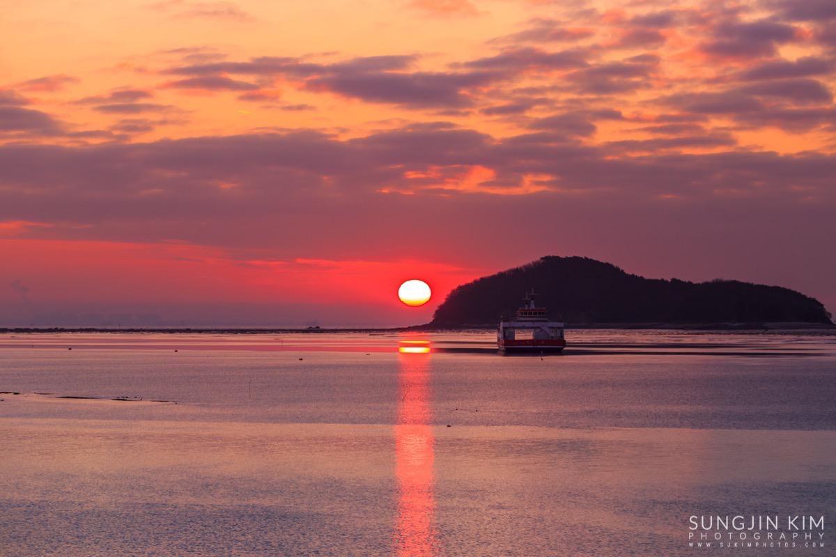 처음에는 상어지느러미 모양의 매도랑을 담을까 하다가 그 곳은 일출각 때문에 좀더 초입 쪽으로 이동해야 해서 그냥 바로 옆의 사렴도라는 작은 섬 옆으로 올라오는 일출을 담았다.