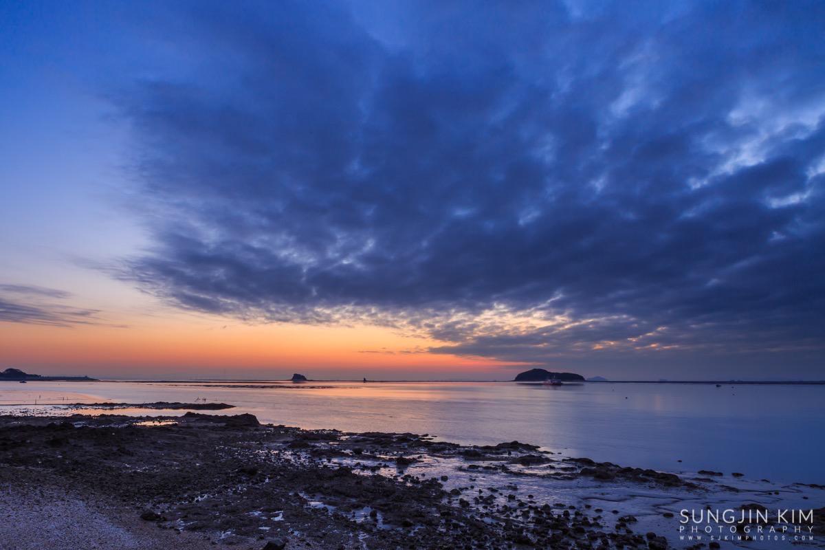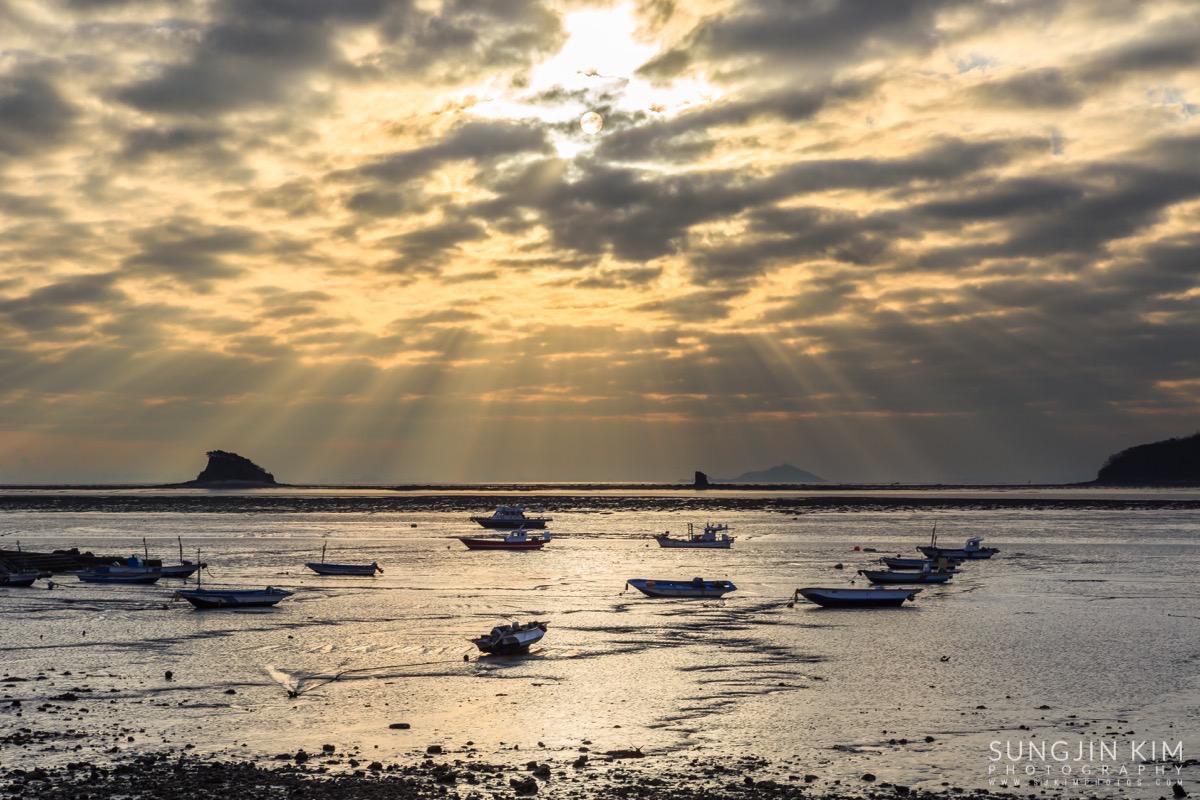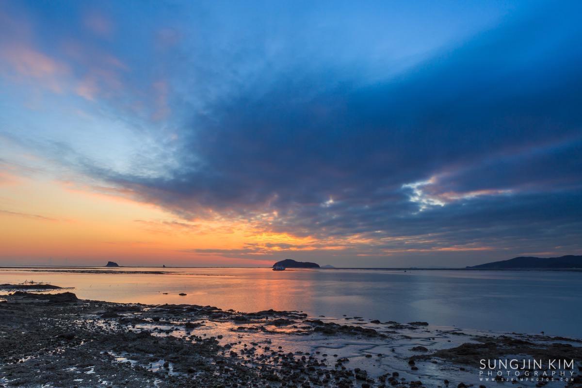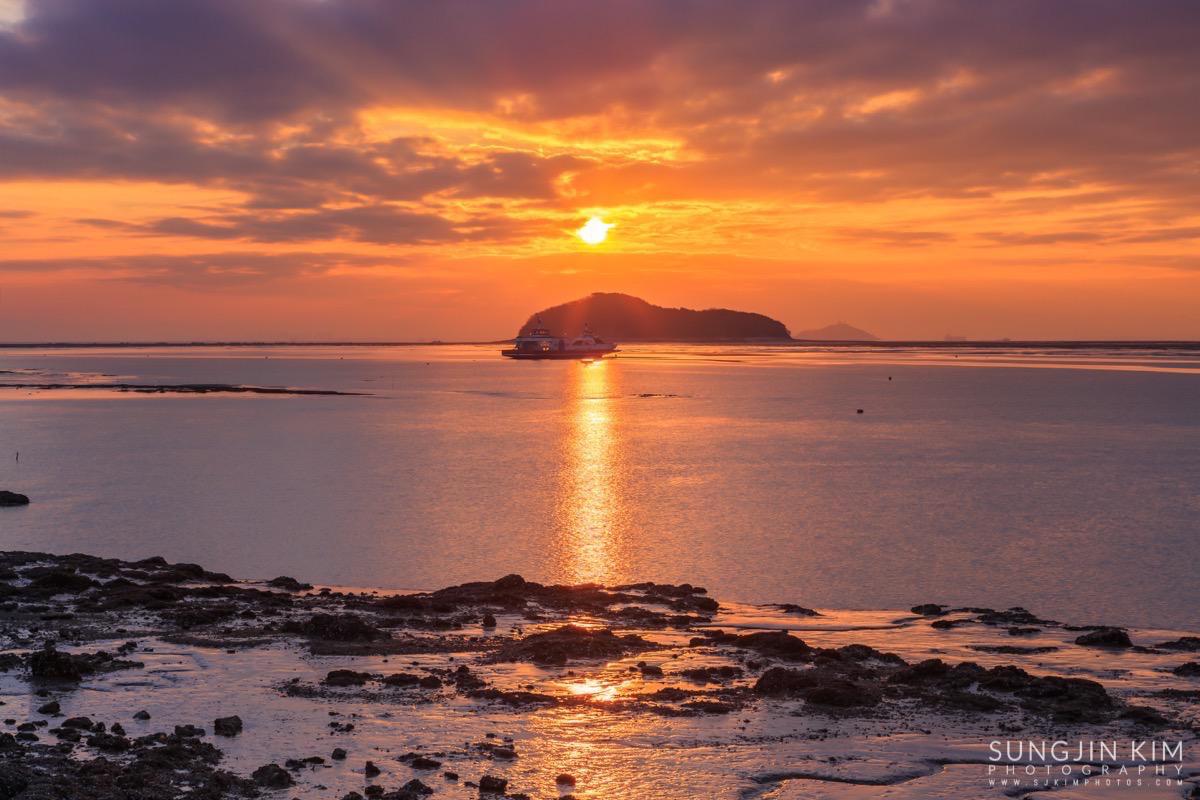 처음에는 상어지느러미 모양의 매도랑을 담을까 하다가 그 곳은 일출각 때문에 좀더 초입 쪽으로 이동해야 해서 그냥 바로 옆의 사렴도라는 작은 섬 옆으로 올라오는 일출을 담았다.