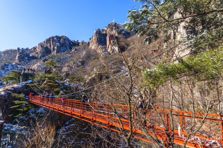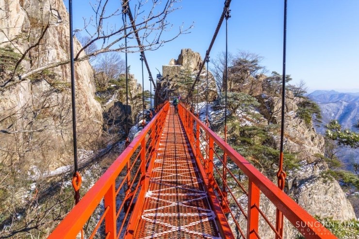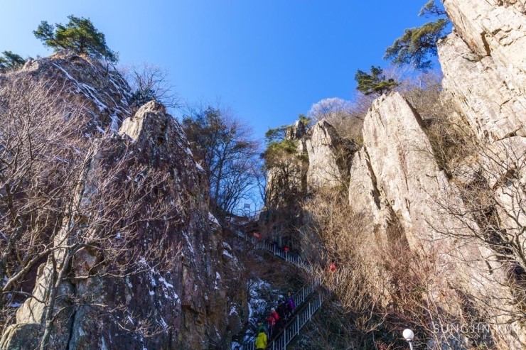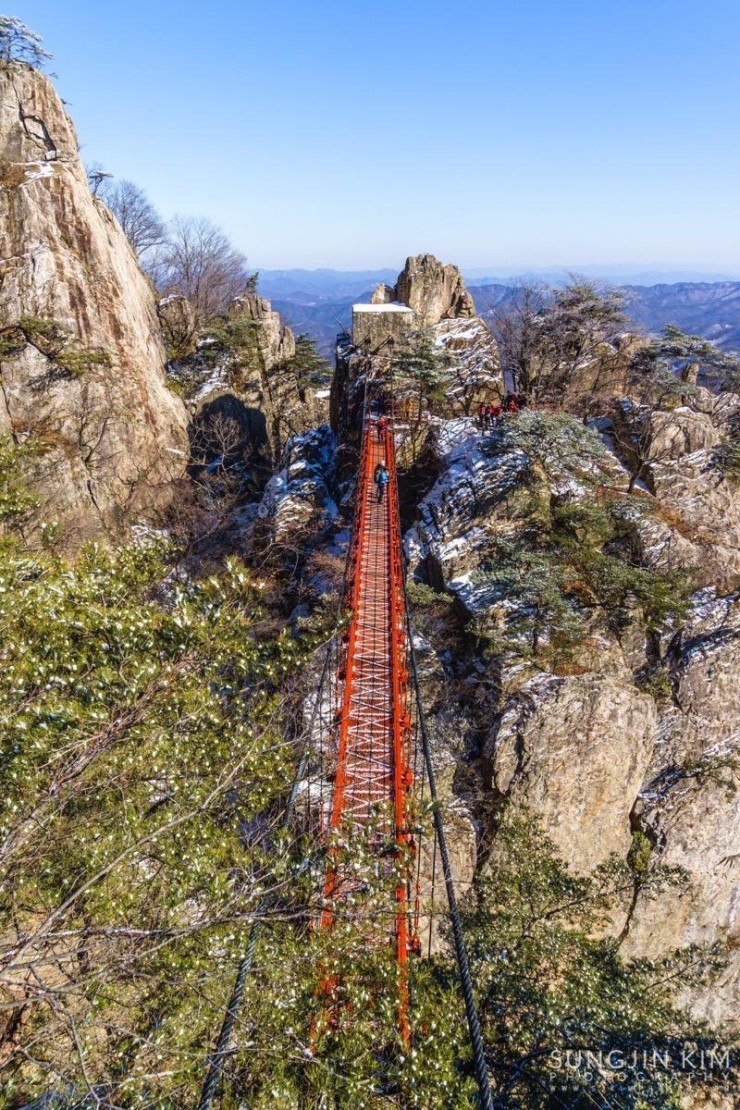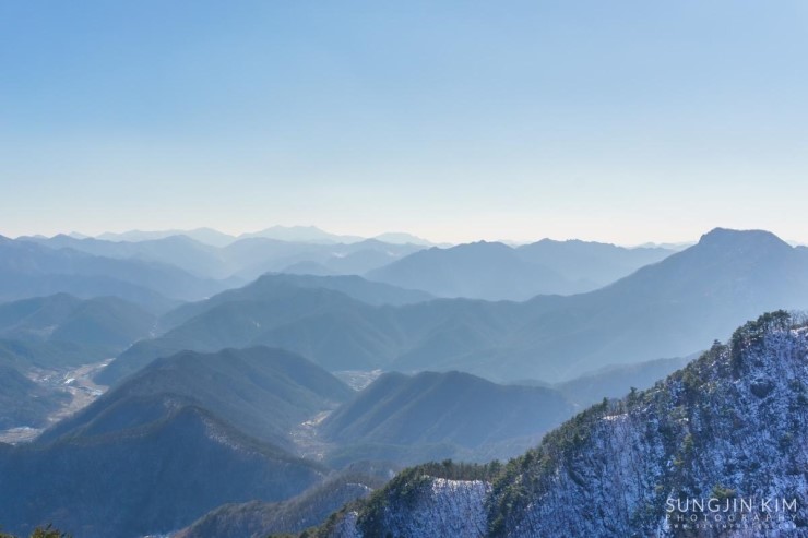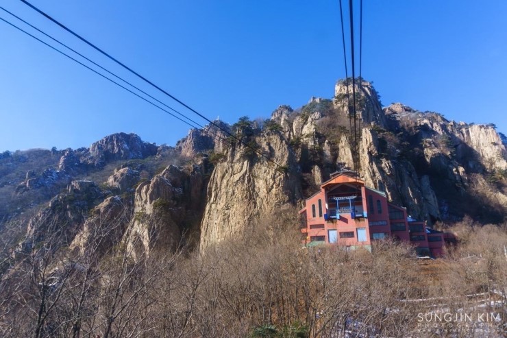 좀비 같이 많은 인파 때문에 덕유산 곤돌라 탑승이 좌절되고 차선책으로 찾은 대둔산. 먼거리는 아니지만 케이블카를 타고 손쉽게 올라가서 내려다보니 눈이 시원한 것이 기분이 좋았다. 정상까지 오르는 길이 결빙되어 있던 탓에 끝까지 오르지는 않고 경치만 잠깐 담고 내려왔다.