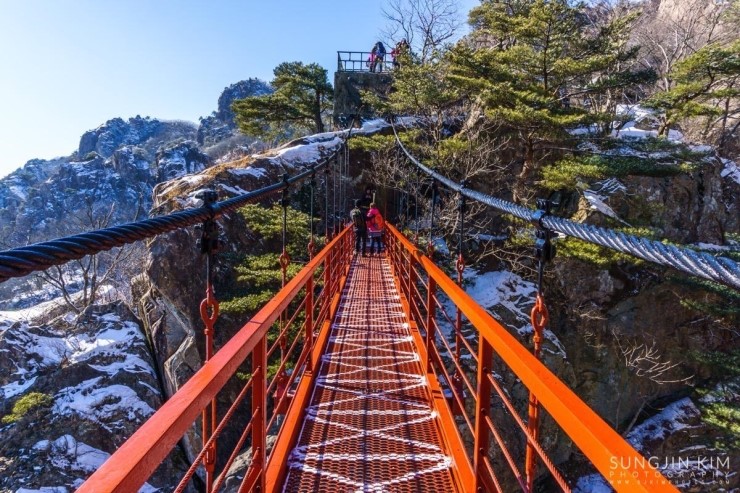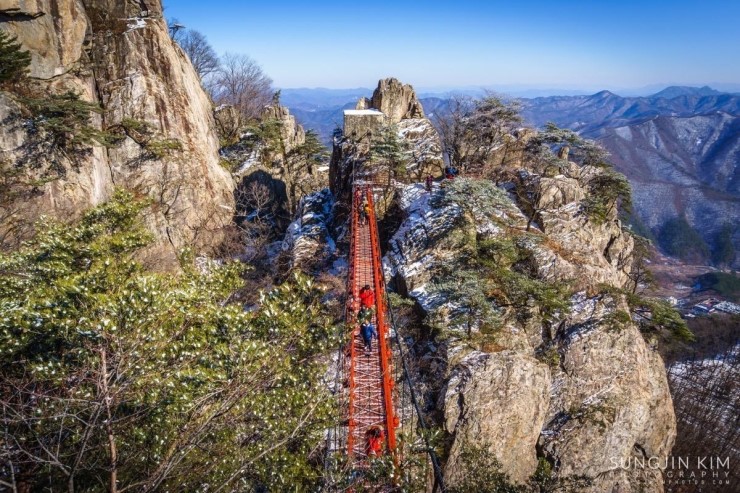 좀비 같이 많은 인파 때문에 덕유산 곤돌라 탑승이 좌절되고 차선책으로 찾은 대둔산. 먼거리는 아니지만 케이블카를 타고 손쉽게 올라가서 내려다보니 눈이 시원한 것이 기분이 좋았다. 정상까지 오르는 길이 결빙되어 있던 탓에 끝까지 오르지는 않고 경치만 잠깐 담고 내려왔다.