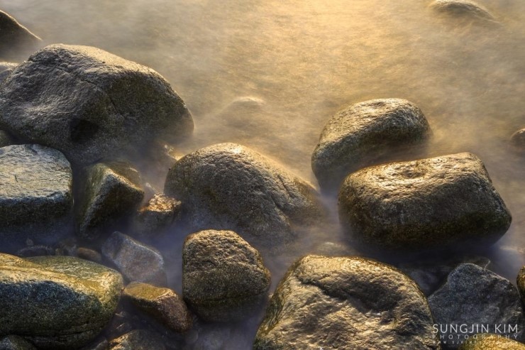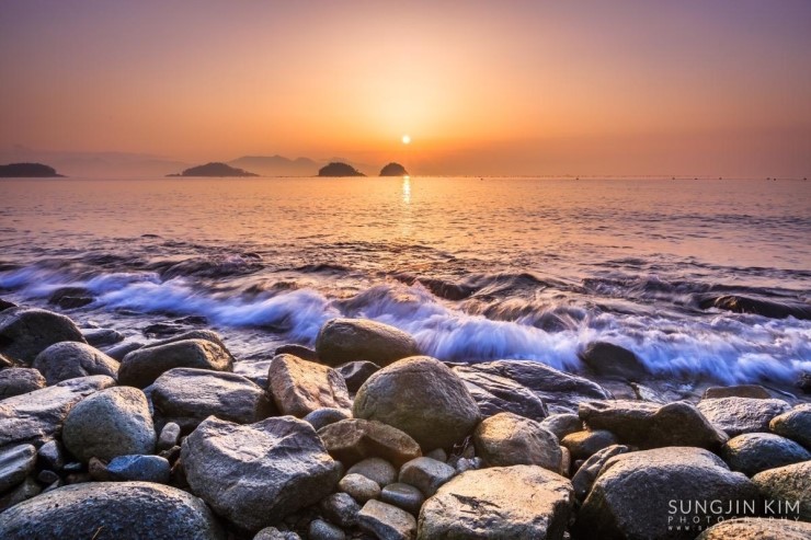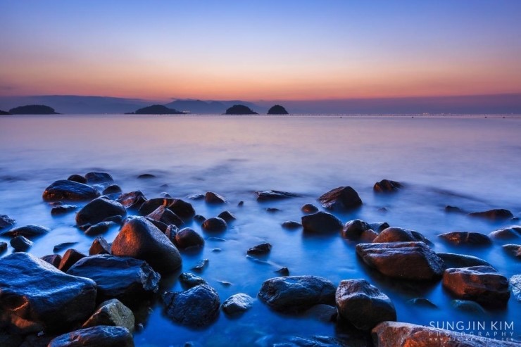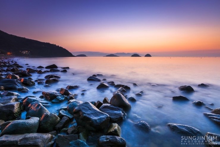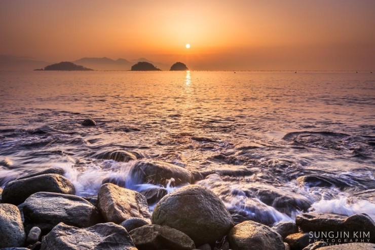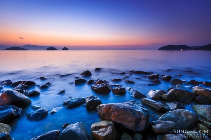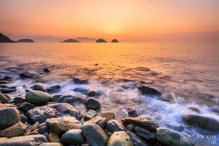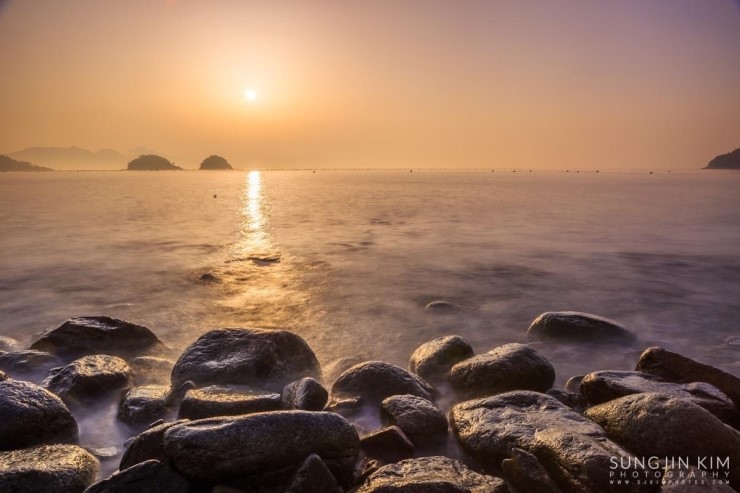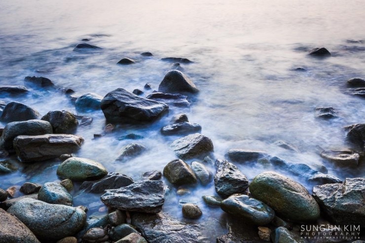 올해초 가족여행 때 들렸던 여수 무슬목해변의 인상 깊었던 풍경이 뇌리 속에 깊게 남아서 종종 머리 속의 상상력으로 구도를 그리며 마음 속으로 다음의 출사를 준비하곤 했다. 그래서 이번 여수 출사의 두번째 장소는 당연히 무슬목해변이었는데 지난번 왔을 때와 달리 밀물 때라 초록 해초로 덮힌 몽돌은 찾을 수가 없었다.