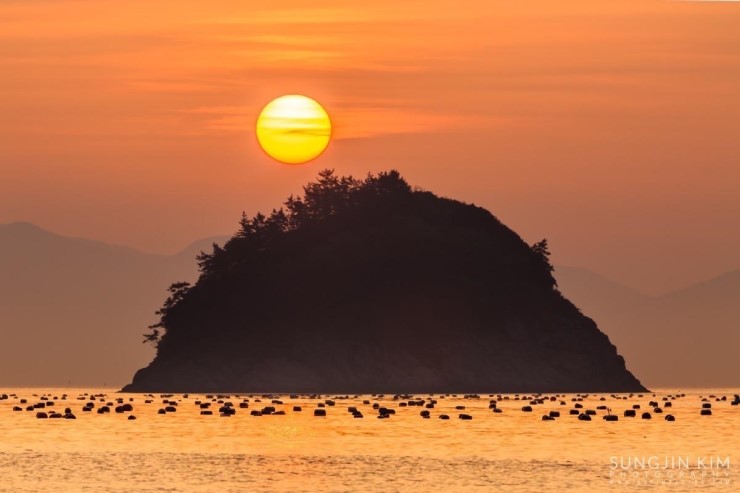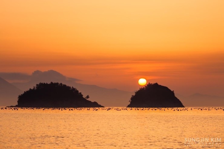 어두컴컴한 하늘도 잠시, 금방 수평선 너머로 먼동이 트기 시작했는데 하늘도 무심하지 하늘색도 원하던 빛깔이 아니었다. 자리를 잘못 잡았는지 한참을 찍다보니 해가 섬 뒤편에 약간 가려서 나타나기 시작했다. 얼른 삼각대 들고 일출 방향에 맞춰 해변을 뛰기 시작했는데 역시 정확하게 형제섬이라 불리는 두 개의 섬 사이에 해를 넣기에는 무리였다.