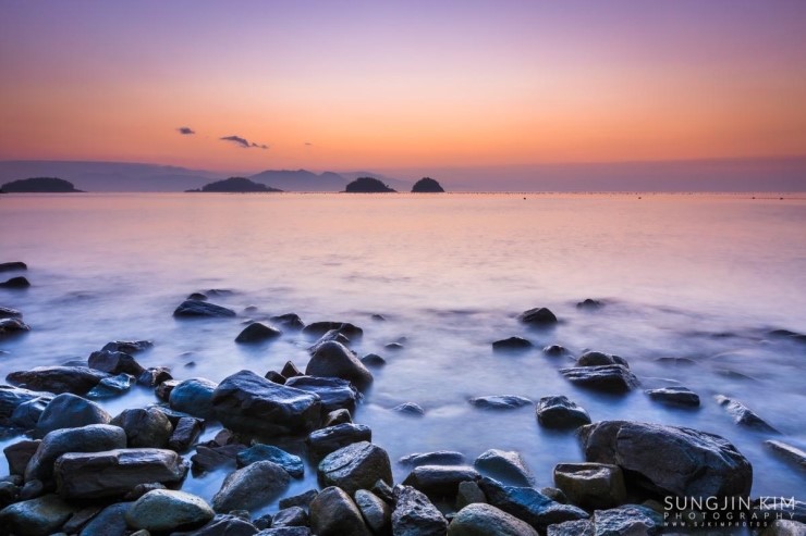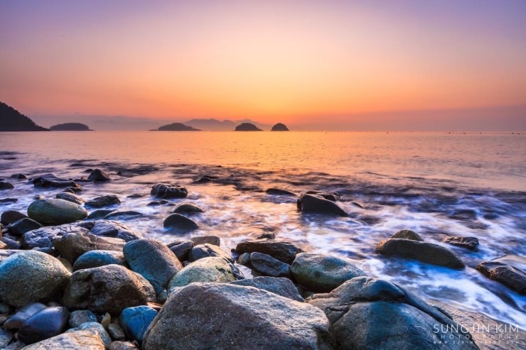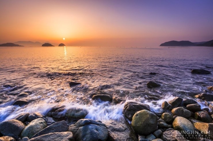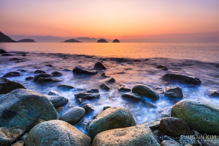 올해초 가족여행 때 들렸던 여수 무슬목해변의 인상 깊었던 풍경이 뇌리 속에 깊게 남아서 종종 머리 속의 상상력으로 구도를 그리며 마음 속으로 다음의 출사를 준비하곤 했다. 그래서 이번 여수 출사의 두번째 장소는 당연히 무슬목해변이었는데 지난번 왔을 때와 달리 밀물 때라 초록 해초로 덮힌 몽돌은 찾을 수가 없었다.