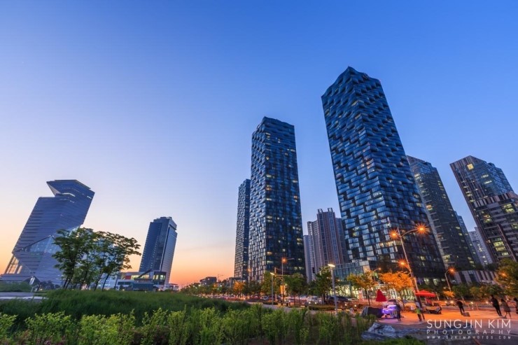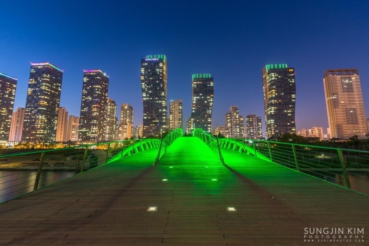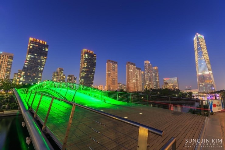 요즘 해지는 시간이 많이 늦어져서 이른 저녁으로 햄버거를 미리 먹고 중앙공원의 수로변에서 땅거미가 내려앉는 송도의 고층 아파트 야경을 담았다. 수로를 건너는 조그만 다리는 기념사진을 찍는 사람들이 수 없이 많아서 사진찍기 쉽지 않았는데 게다가 사람들이 지날 때마다 다리가 흔들려서 타이밍 조절 하느라 더욱 애를 먹었다.
