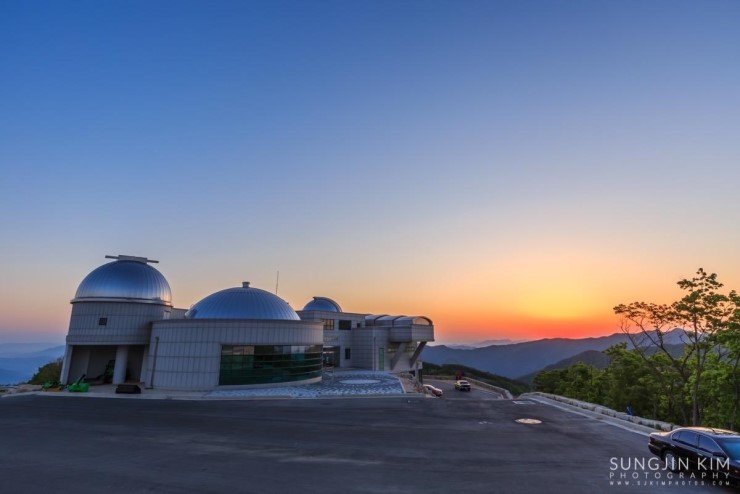 은하수가 하늘로 너무 올라가기 전에 재빨리 촬영을 시작했다. 간단한 타임랩스와 별궤적 그리고 파노라마로 만들기 위한 촬영을 바쁘게 마치고 나니 일출까지 1시간 좀 넘게 남아 있었다. 차에서 잠깐 눈을 붙이며 일출을 기다렸다. 그 사이 그 많던 차들을 하나 둘 주차장을 빠져나가 버리고 몇 대 남지 않았다. 이윽고 먼 동이 터올 무렵 천문대와 일출을 같이 담을 수 있는 장소를 찾아 지평선 위로 해가 올라오길 기다리는 사이 워낙 구름 한 점 없이 맑은 하늘이라 다소 밋밋하긴 했지만 시뻘건 태양이 순식간에 솟아 올라왔다. 길고 긴 출사의 마지막을 장식하는 일출이었다.