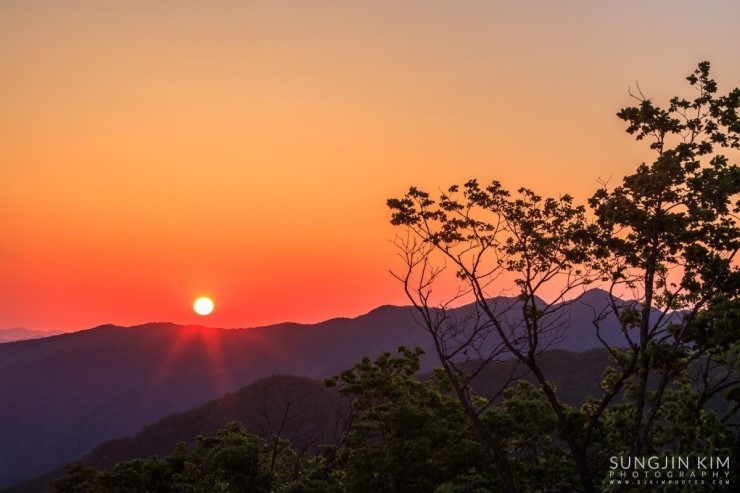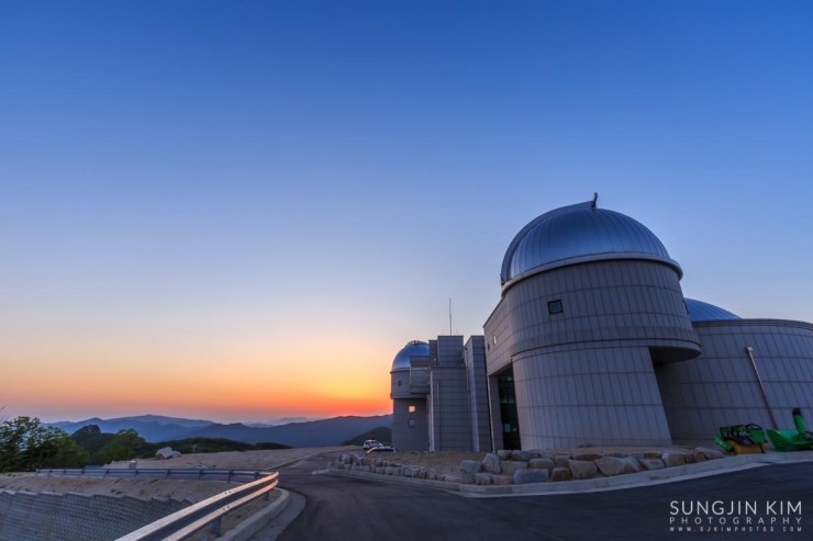 은하수가 하늘로 너무 올라가기 전에 재빨리 촬영을 시작했다. 간단한 타임랩스와 별궤적 그리고 파노라마로 만들기 위한 촬영을 바쁘게 마치고 나니 일출까지 1시간 좀 넘게 남아 있었다. 차에서 잠깐 눈을 붙이며 일출을 기다렸다. 그 사이 그 많던 차들을 하나 둘 주차장을 빠져나가 버리고 몇 대 남지 않았다. 이윽고 먼 동이 터올 무렵 천문대와 일출을 같이 담을 수 있는 장소를 찾아 지평선 위로 해가 올라오길 기다리는 사이 워낙 구름 한 점 없이 맑은 하늘이라 다소 밋밋하긴 했지만 시뻘건 태양이 순식간에 솟아 올라왔다. 길고 긴 출사의 마지막을 장식하는 일출이었다.