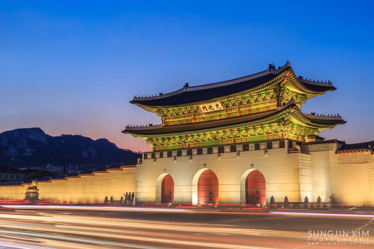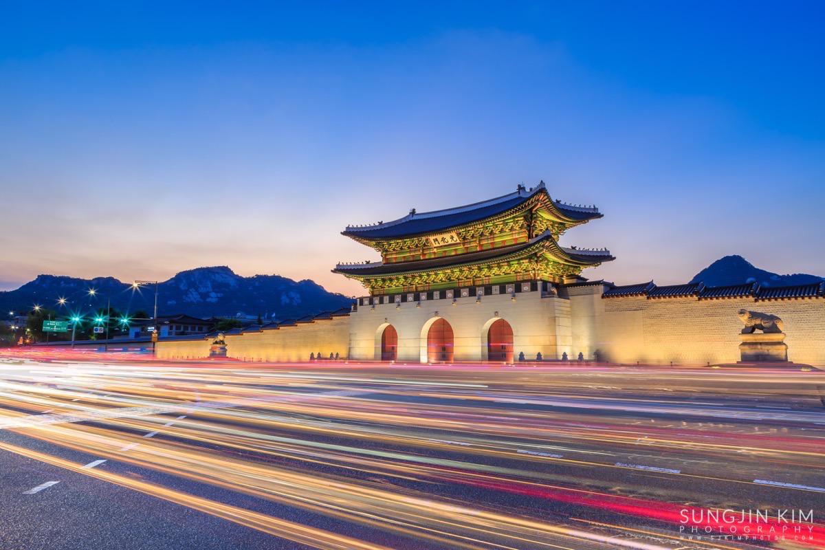 해가 지기 시작하고 나서 잠시 기다리다 보면 금새 광화문의 조명이 들어오기 시작하는데, 이 때부터 대략 30분 정도 동안이 광화문의 가장 아름다운 순간인 것 같다. 광화문 앞을 지나는 차량불빛의 궤적이 광화문을 더 돋보이게 하는 것 같다.
