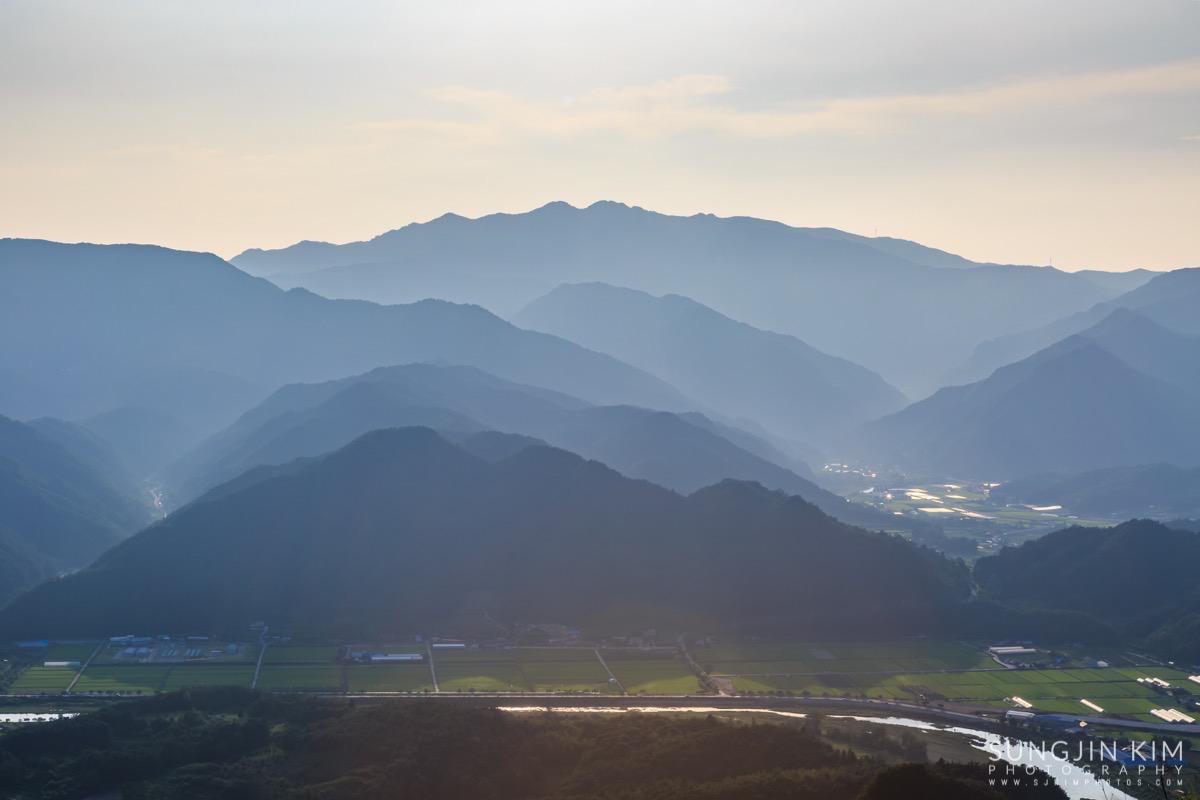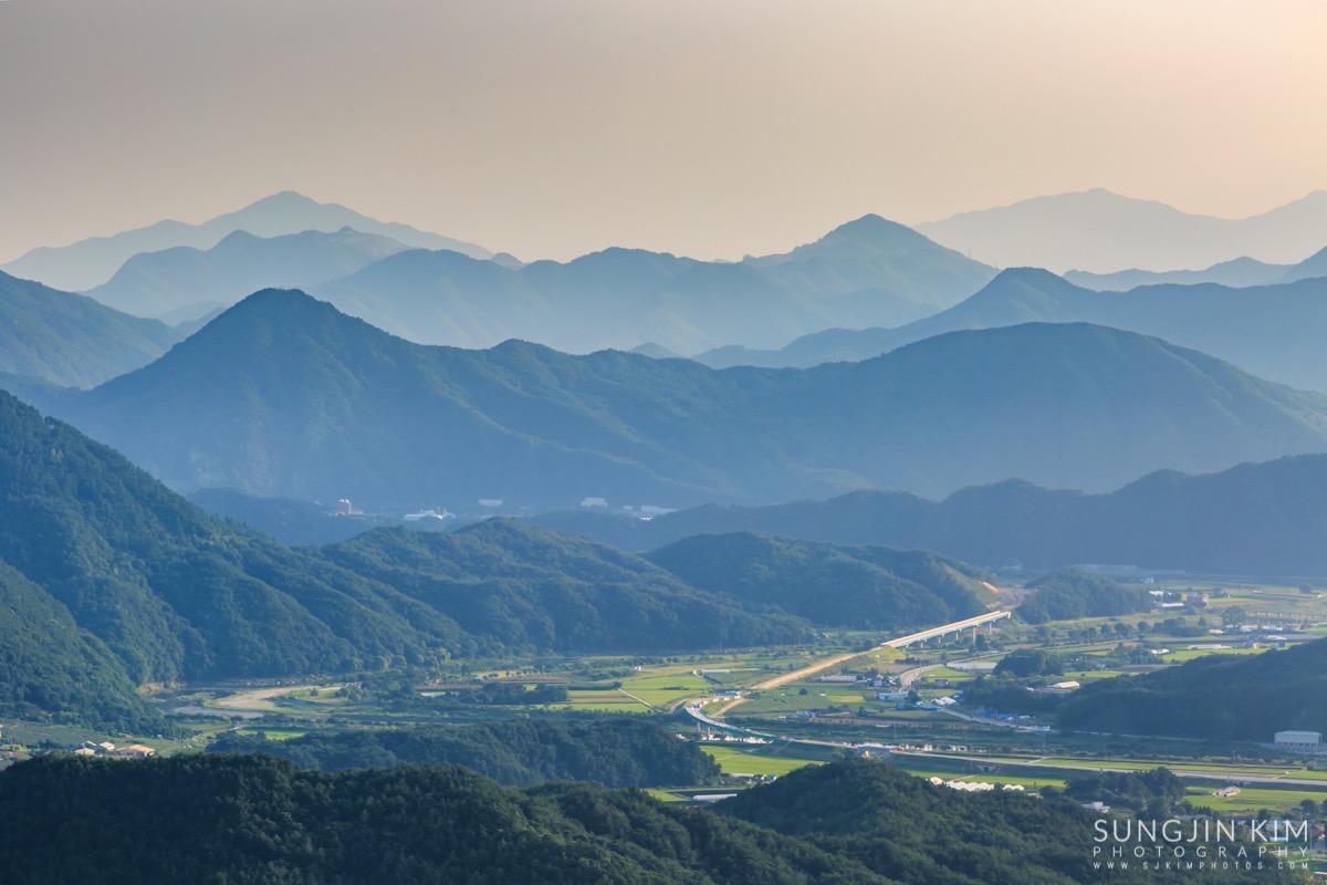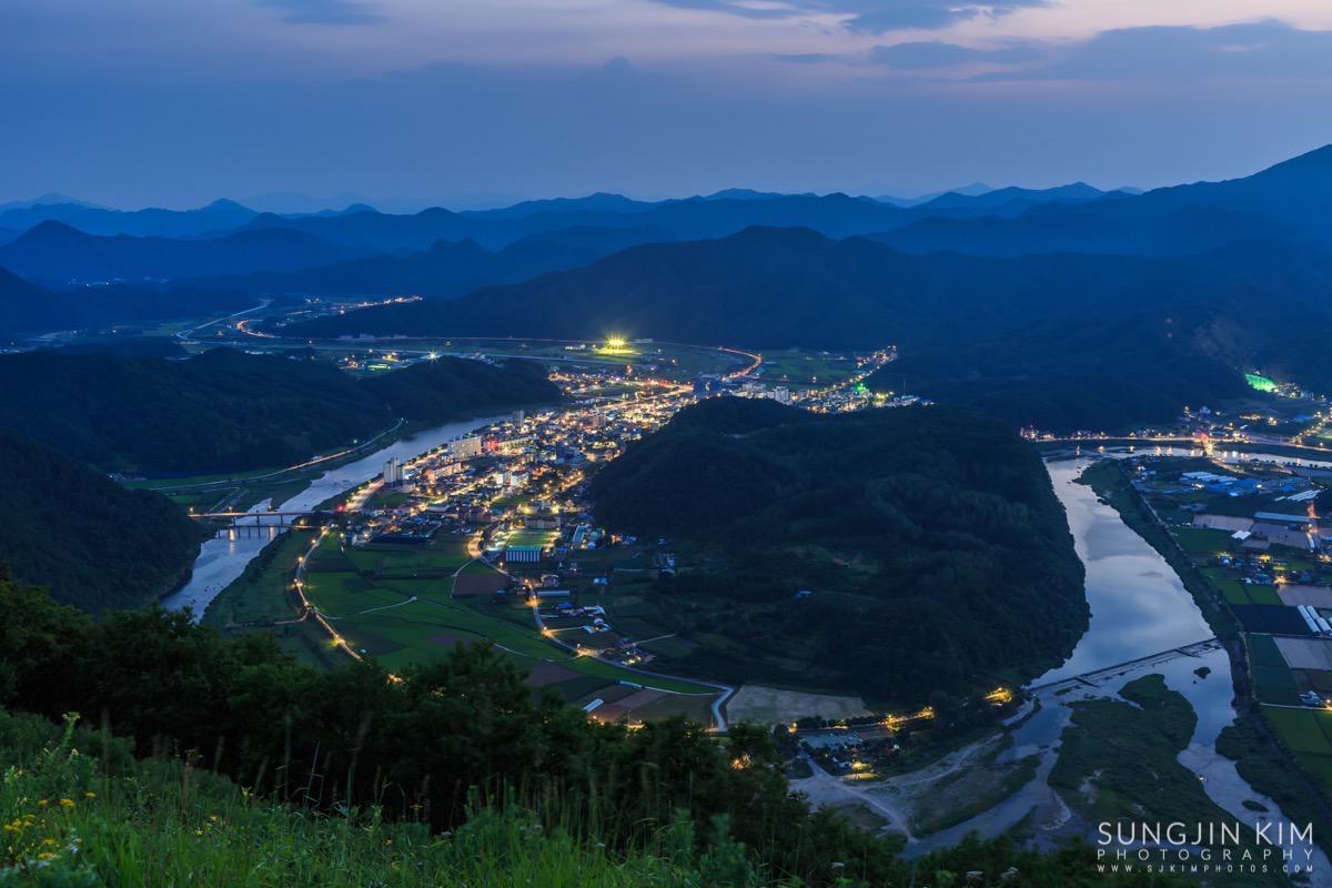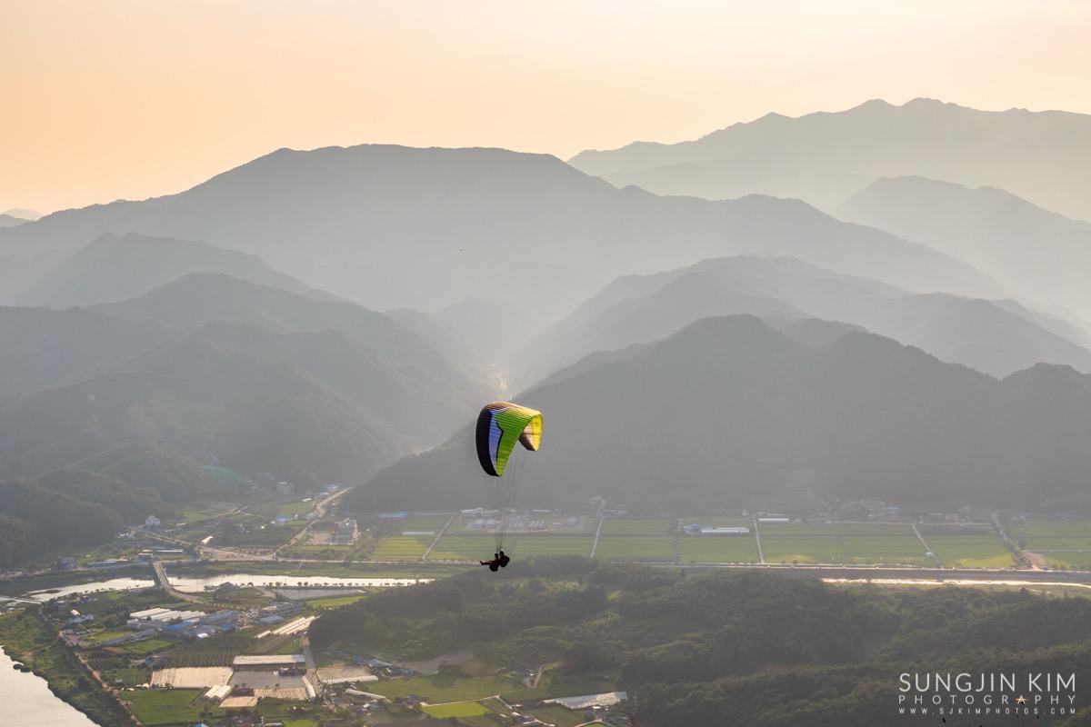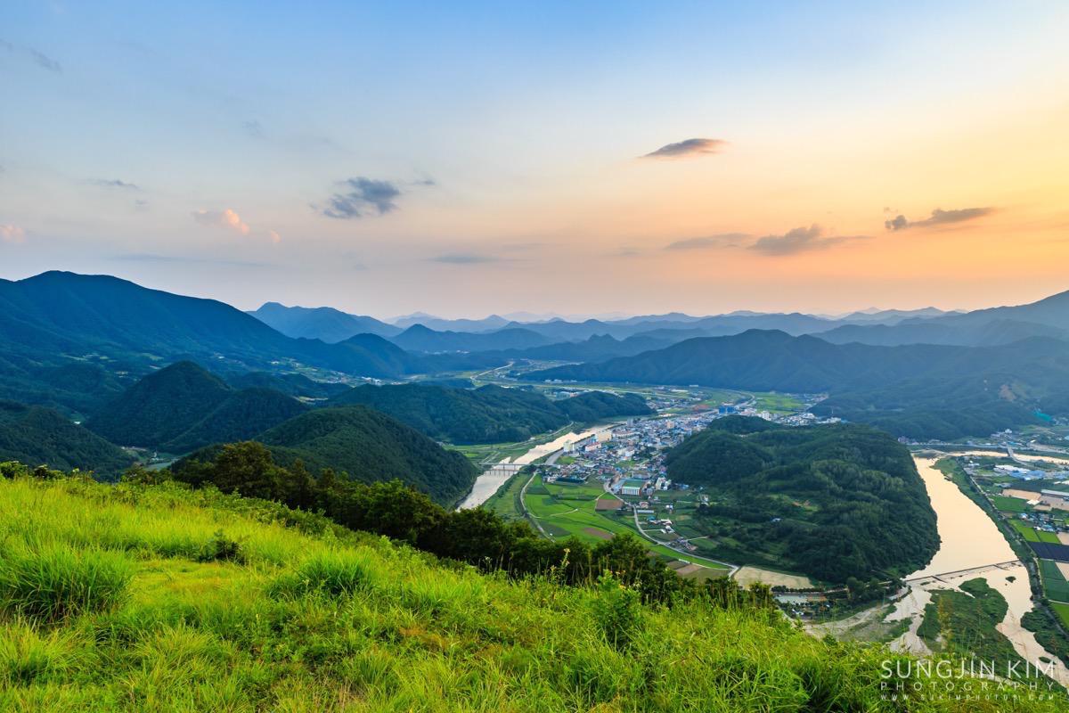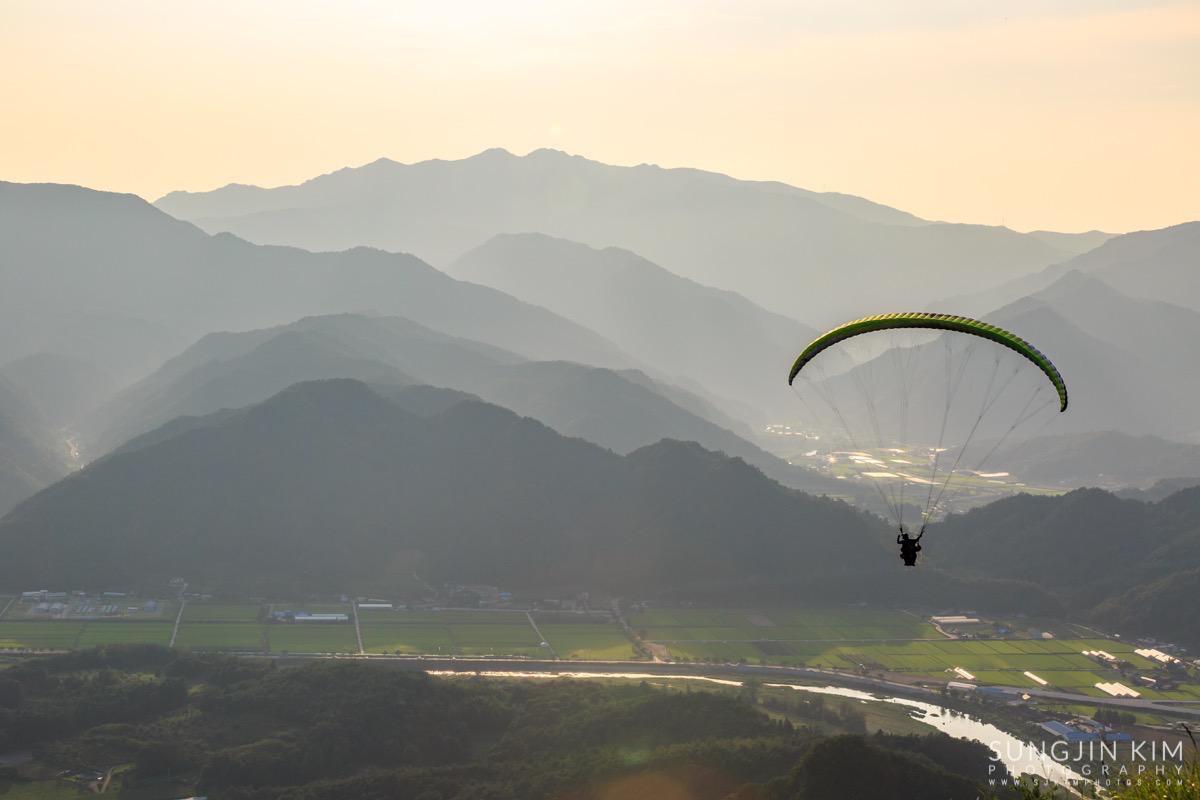 원래 목적지인 미시령에서 별도 담고 일출도 담을 계획이었는데 중간에 평창에서 일몰을 담고 가기 위해 조금 일찍 출발하였다. 평창읍의 장암산 활공장에 올라가 보니 전망도 훌륭하고 방향도 일몰각이라 이런저런 화각으로 사진을 담으면서 해가 지길 기다렸다.