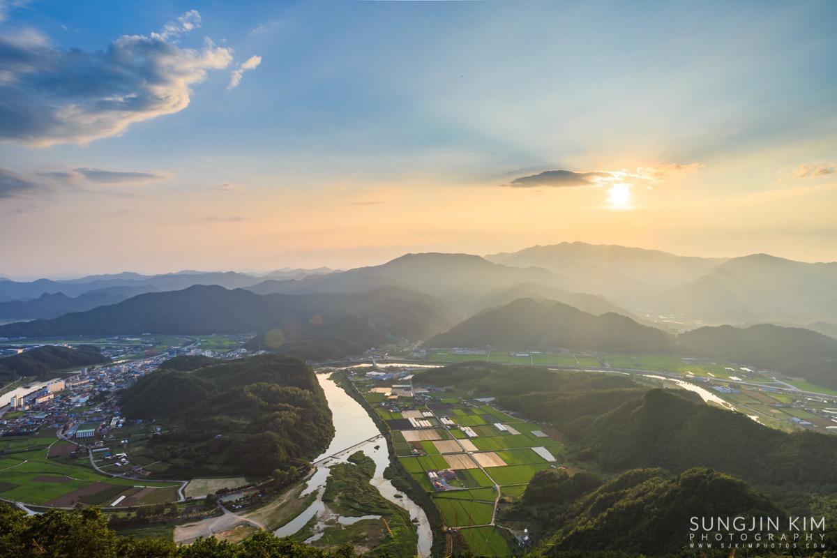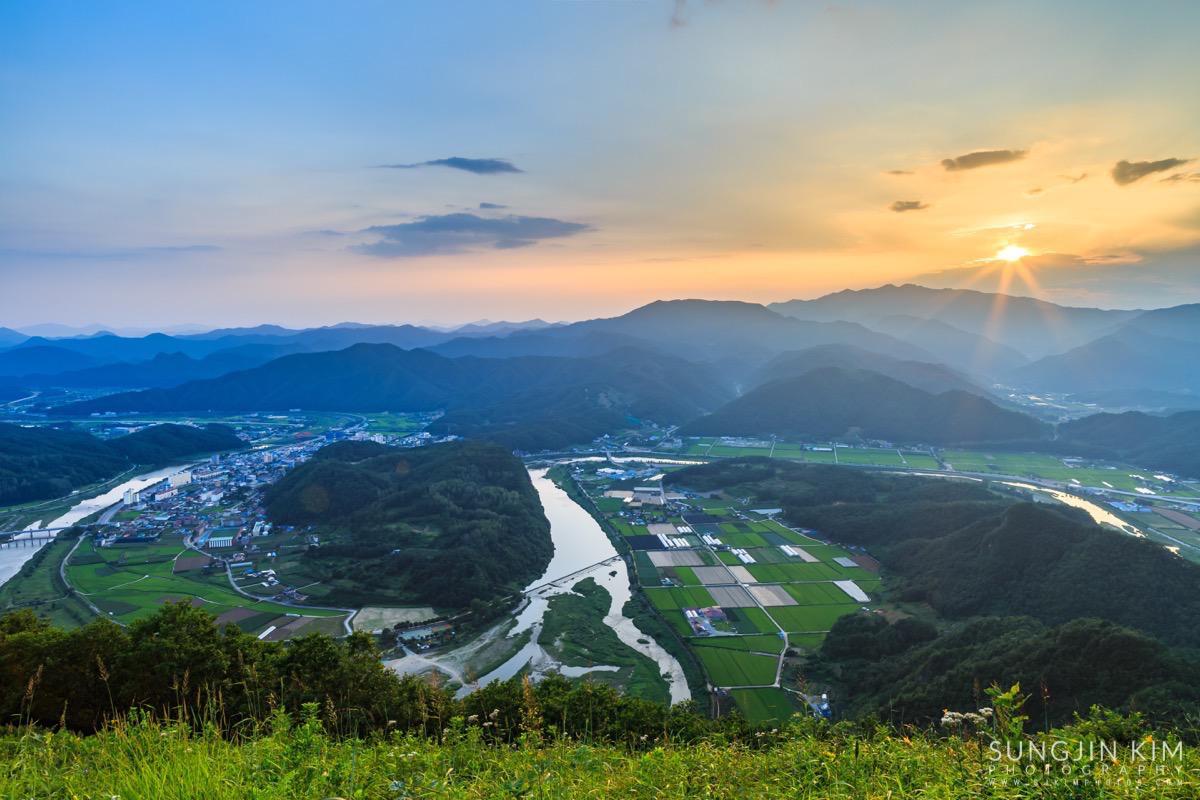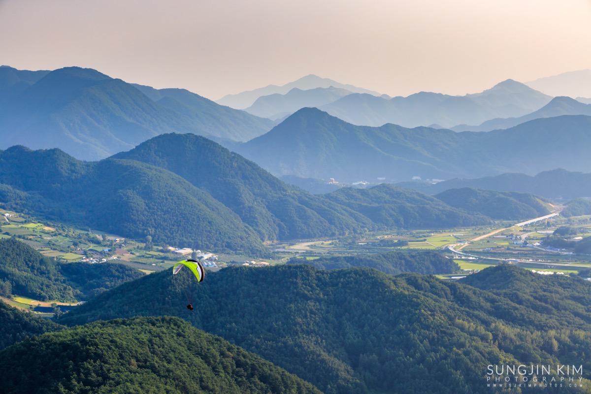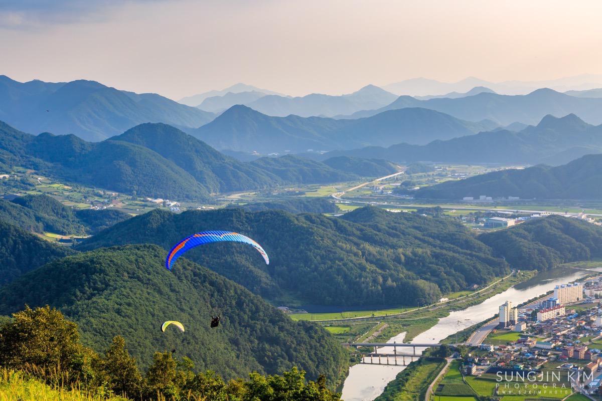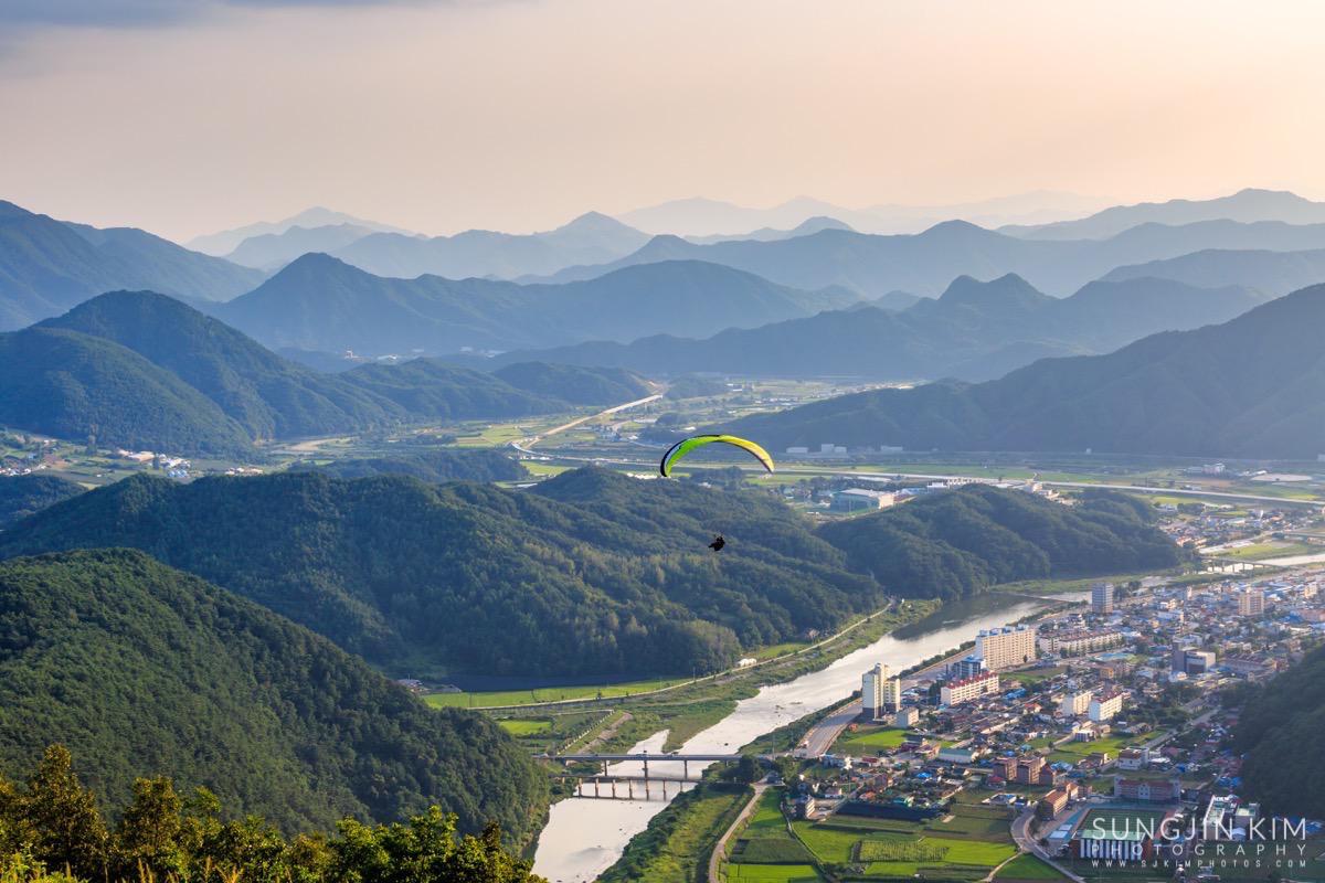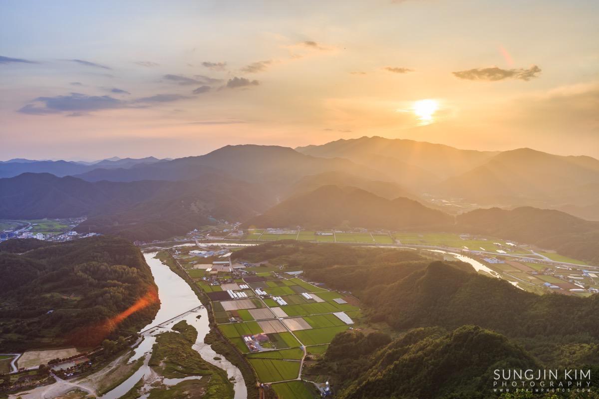 원래 목적지인 미시령에서 별도 담고 일출도 담을 계획이었는데 중간에 평창에서 일몰을 담고 가기 위해 조금 일찍 출발하였다. 평창읍의 장암산 활공장에 올라가 보니 전망도 훌륭하고 방향도 일몰각이라 이런저런 화각으로 사진을 담으면서 해가 지길 기다렸다.